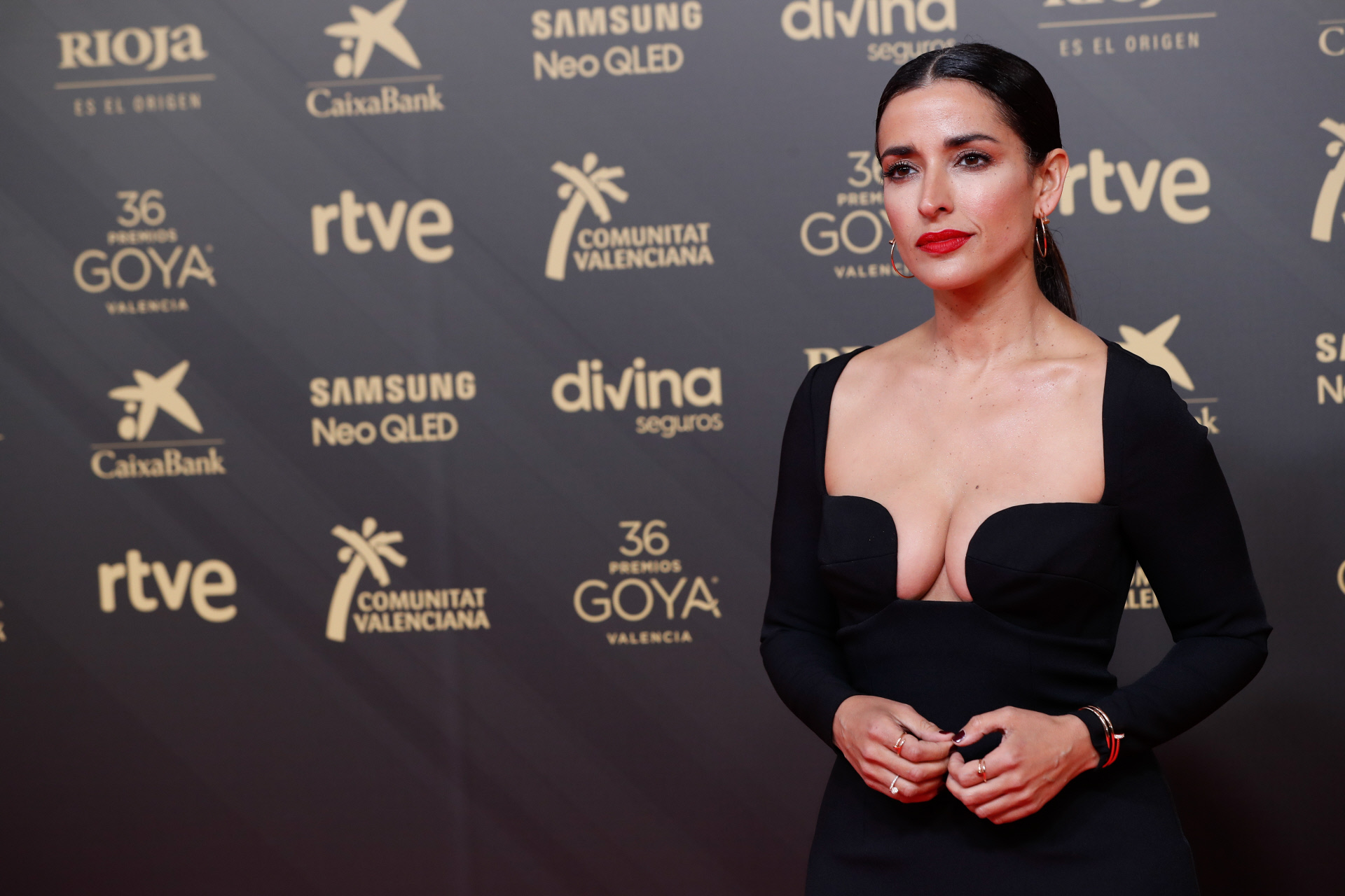 Cristina Castaño optó por la sensualidad en estos Goya valencianos con un estilizado vestido vaporoso negro con transparencias que dejaban entrever su figura.