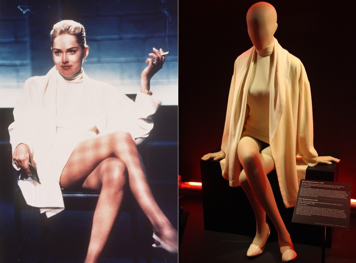 Ellen Mirojnick fue la encargada de diseñar el vestuario para Instinto básico (1992), dirigida por Paul Verhoeven. Para la famosa escena del interrogatorio, Sharon Stone lució un estilismo sexy y elegante formado por un vestido chaqueta y zapatos en lana, seda y cuero. Un vestuario ideal para su protagonista, Catherine Tramell, una mujer guapa y rica sospechosa de asesinato que encarna a la mujer fatal, seductora y maquiavélica.
