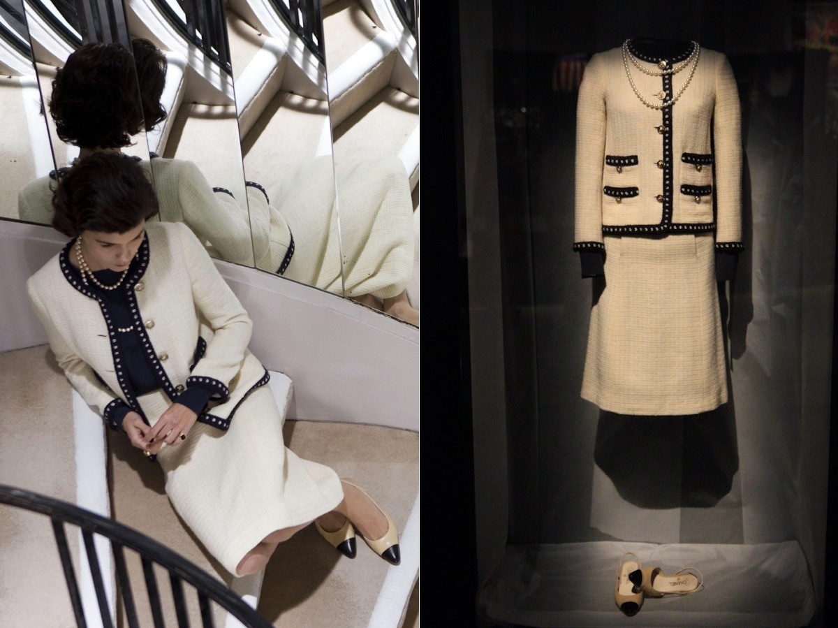 El cine también ha acercado a los espectadores la historia personal de los grandes diseñadores de moda. La francesa Audrey Tautou fue la encargada de interpretar a Coco Chanel, Coco, de la rebeldía a la leyenda de Chanel (2009), dirigida por Anne Fontaine. La película, nominada a varios premios del cine europeo, también recibió una nominación al Oscar por mejor diseño de vestuario, del que se encargó Catherine Leterrier. Llevado por Tautou en la mítica escalera de la tienda de la Rue Cambon (París), este traje sastre de tweed ribeteado es una de las prendas más icónicas de la diseñadora, pensado para lucir tanto de día como de noche y con la comodidad inspirada en la indumentaria masculina. El fallecido modisto de Chanel, Karl Lagerfeld, lo rediseñó para la película.