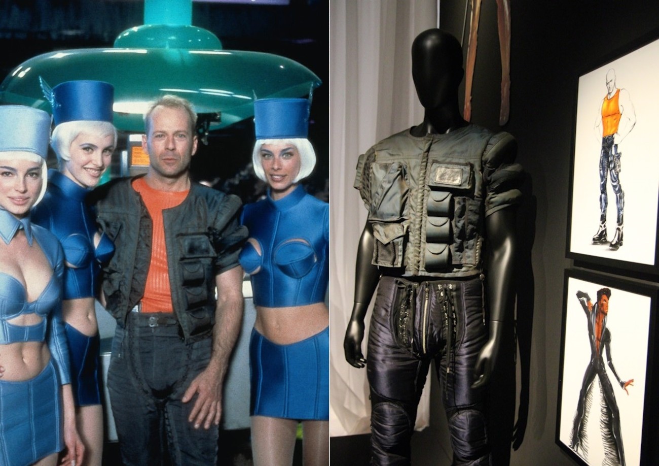 Luc Besson triunfaba en los 90 después de haber dirigido Nikita y Leon (El profesional). En 1997 estrenó su clásico de la ciencia ficción El quinto elemento, una película aclamada y odiada a partes iguales. Lo que es irrebatible es su estilo visual gracias al maquillaje, la escenografía y, sobre todo, el impresionante vestuario futurista del que se encargó el entonces enfant terrible de la moda francesa: Jean Paul Gaultier. En la memoria colectiva queda el traje de cintas blancas de su protagonista Leeloo, interpretado por una magnética Mila Jovovich, el uniforme azul de las azafatas de vuelo, cualquier prenda defendida por Chris Tucker (es difícil elegir), o la chaqueta bomber de manga corta combinada con la camiseta naranja sin mangas que lució un musculado Bruce Willis. A la derecha, copias para exposición de ilustraciones de Fabien Esnard-Lascombe.