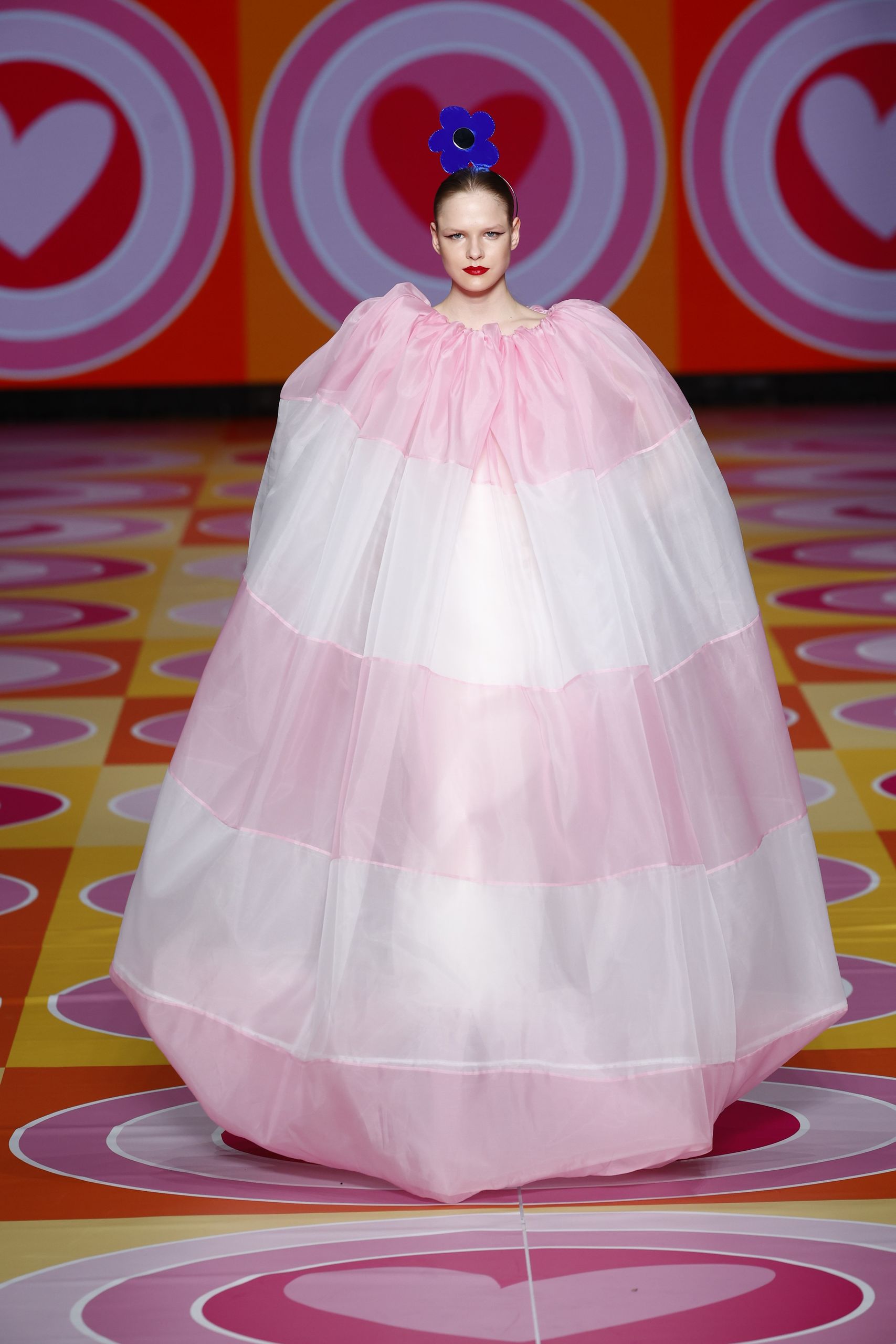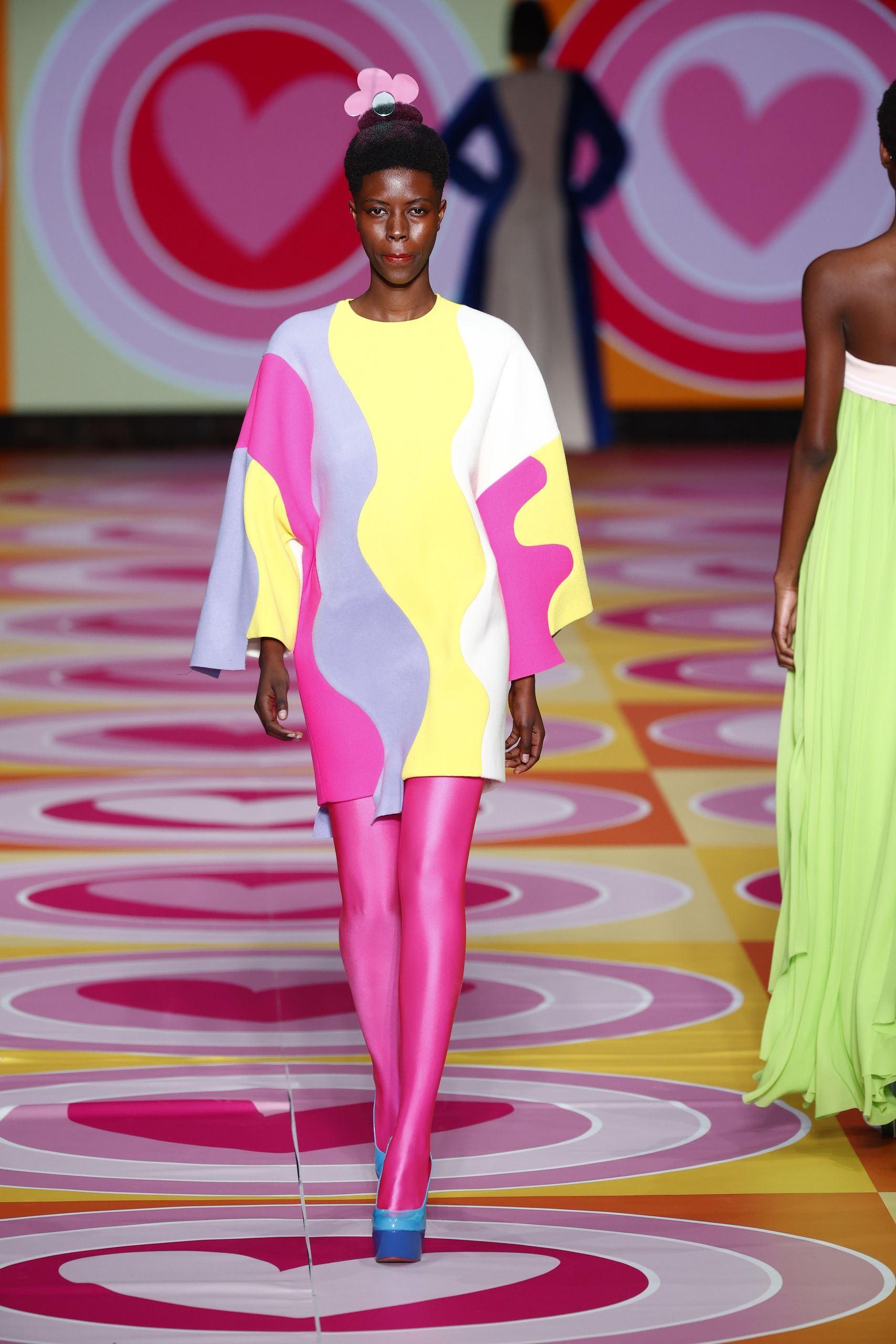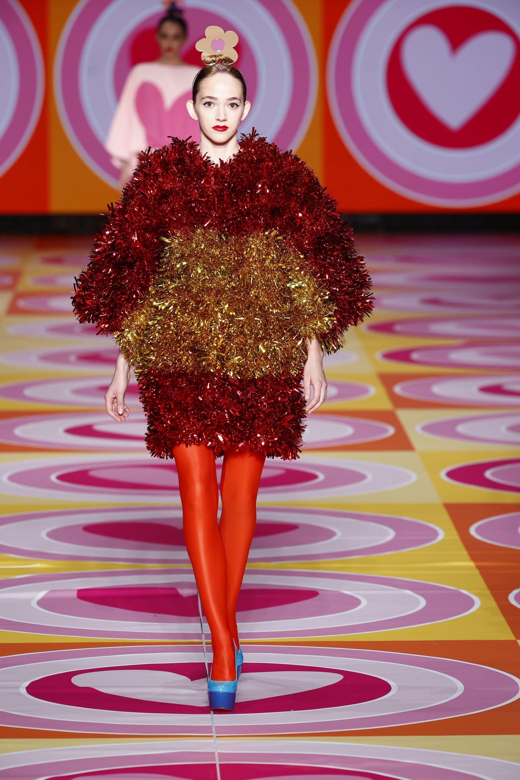 Tras una serie de prendas coloristas de aire retro, ha sido el momento de piezas setenteras, entre ellas, unas con pelo que recrean el momento en el que se derrite la nata y otras con el huevo frito como principal protagonista.