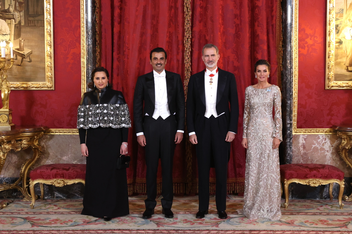 La reina Letizia y la presidenta de la Comunidad de Madrid, Isabel Díaz Ayuso, brillaron en la cena de gala en honor a sus altezas el jeque Tamim Bin Hamad Al Thani, emir de Qatar, y la jequesa Jawaher Bint Hamad Bin Suhaim Al Thani.
