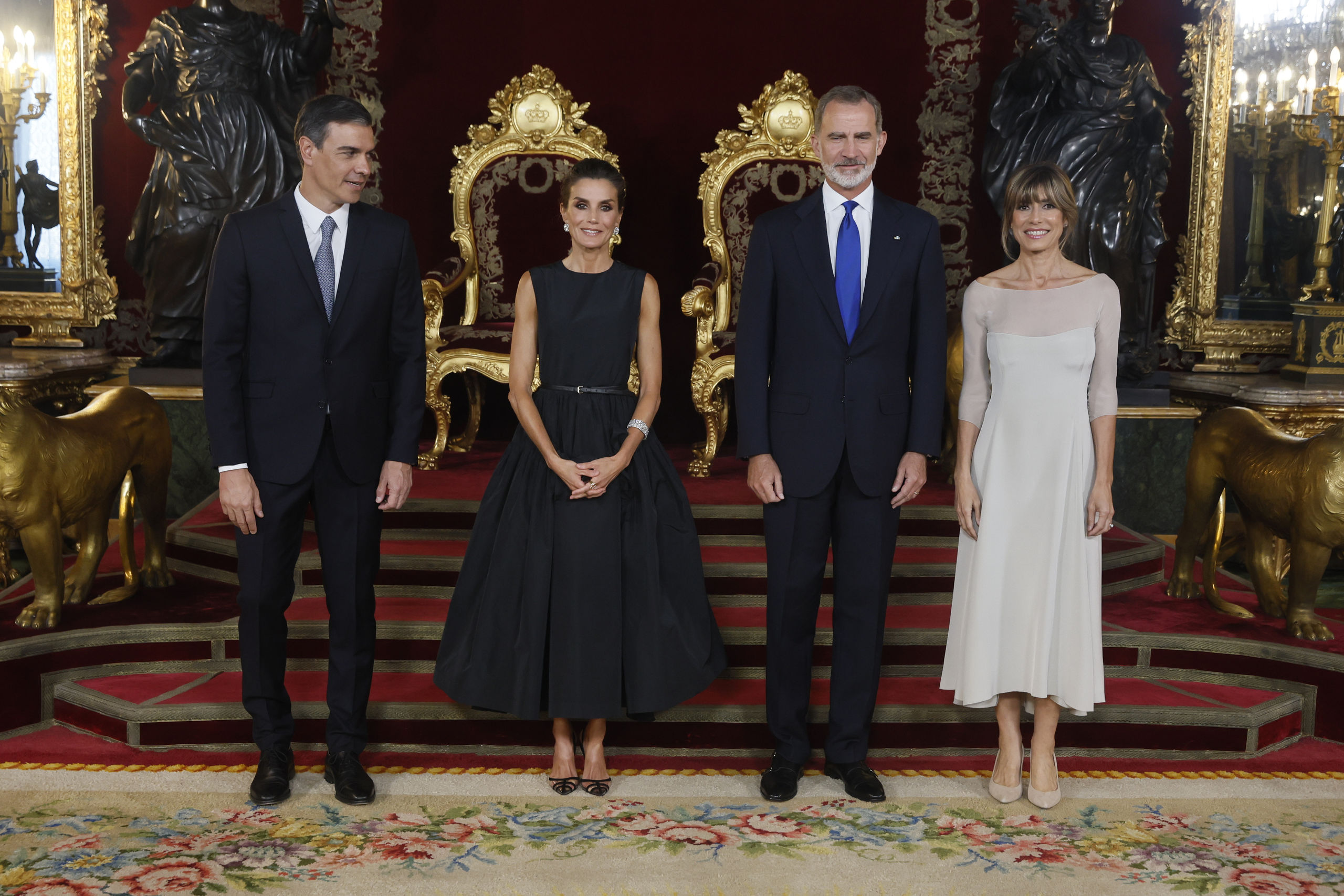 Los reyes, recibiendo al presidente del Gobierno, Pedro Sánchez, y su mujer, Begoña Gómez.