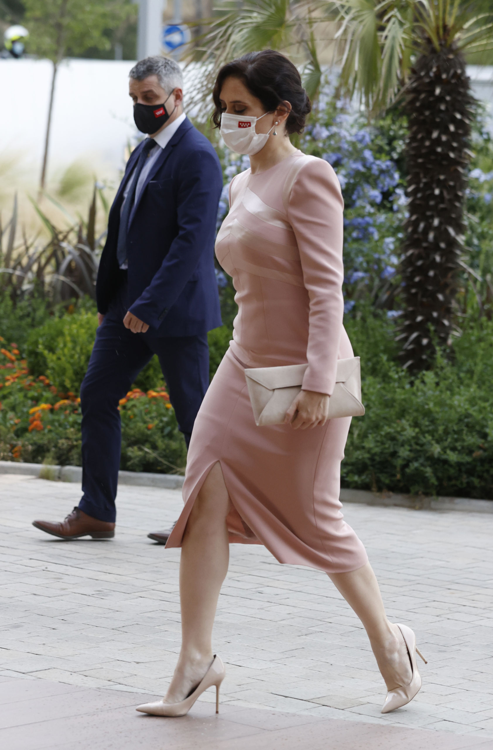 Tres días después de su investidura, la firma de Vicky Martín-Berrocal fue de nuevo la elegida por la presidenta de la Comunidad de Madrid para la entrega de Premios Mariano de Cavia, presidida por los Reyes. En esta ocasión cambió el fucsia por el nude y se decantó por el modelo Natalié, confeccionado en satén, con corte midi, manga larga y hombro estructurado.