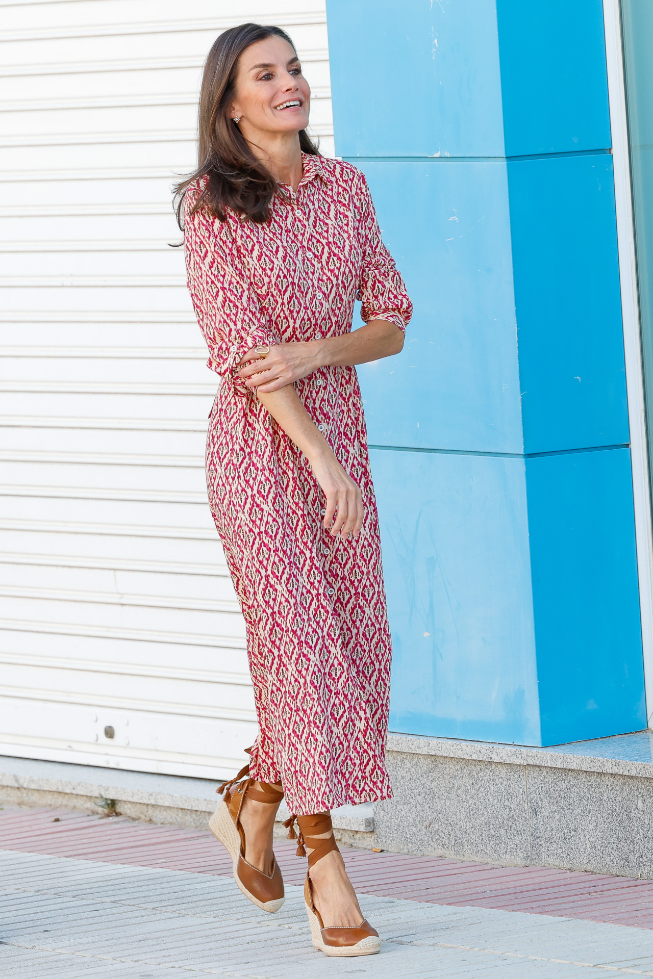 Sin duda, uno de los modelos más rejuvenecedores y juveniles que ha lucido la Reina en los últimos tiempos y que, al igual que su hija, ha combinado con unas alpargatas de cuña; en concreto con un modelo de piel marrón de Uterqüe que le hemos visto en numerosas ocasiones. Un look de 10 que nos deja con muy buen sabor de boca y que huele, indiscutiblemente, a verano y a vacaciones.