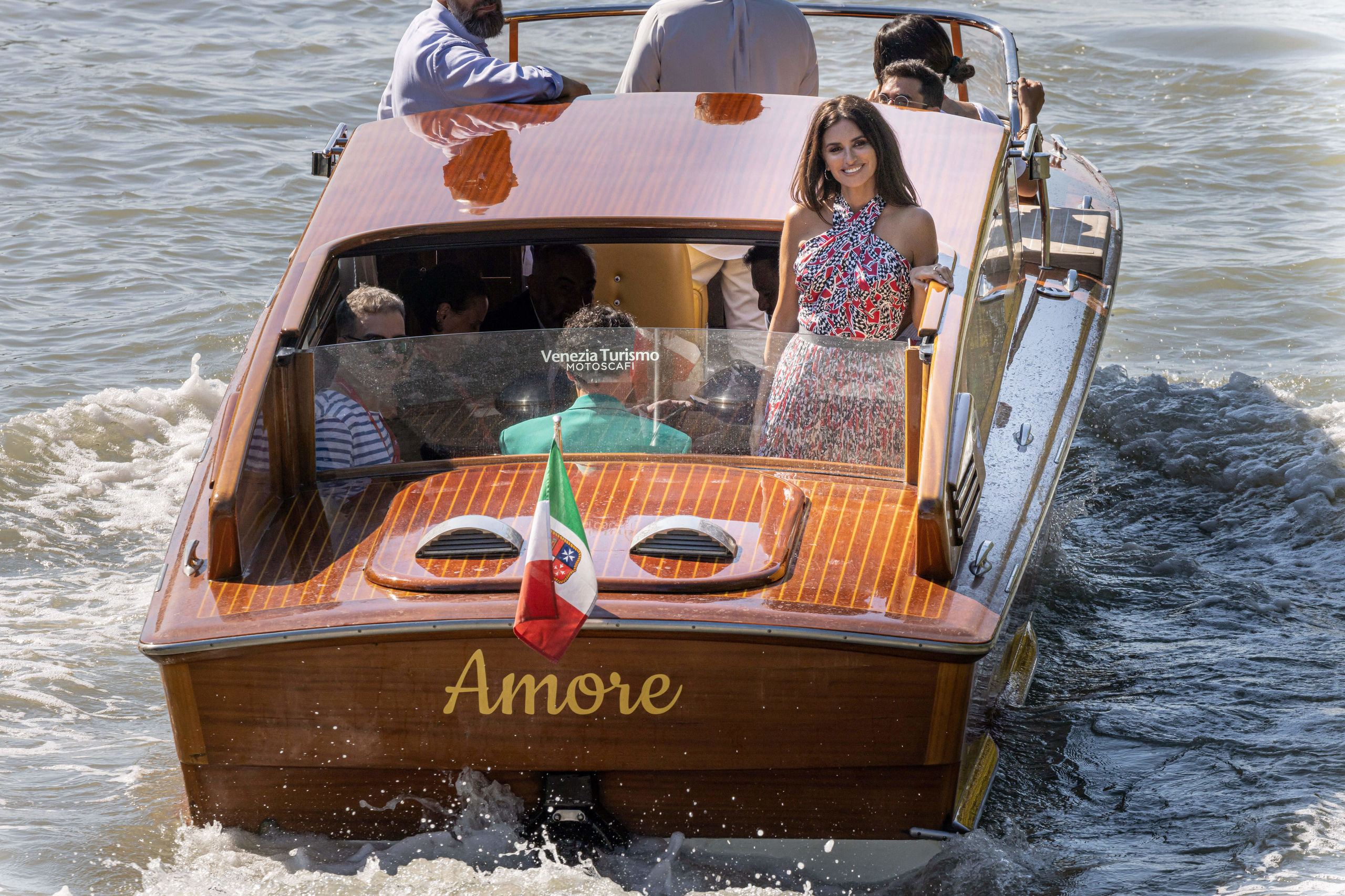 Horas antes, por la tarde, apareció a bordo de un popular vaporetto sobre las aguas de ciudad italiana. Allí acaparó los flashes de los fotógrafos como buena estrella internacional.