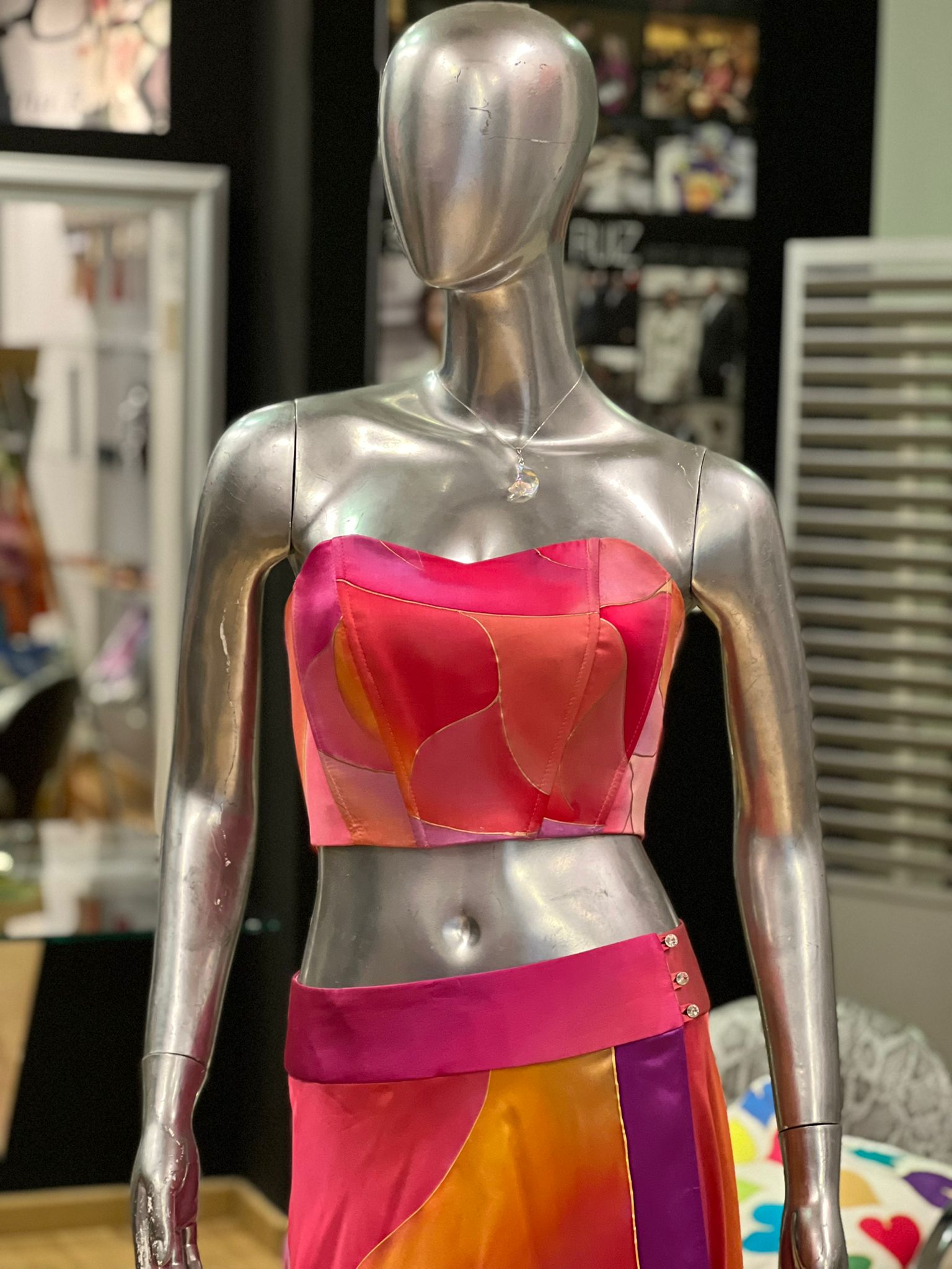 Su filosofía es acercar el arte a la moda y su forma de trabajar le permite ofrecer una amplia gama únicos y exclusivos: abanicos, pañuelos, fulares, mantones, ponchos etc.