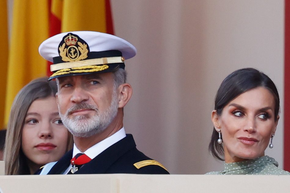 Los reyes, Felipe VI y doña Letizia, acompañados por su hija en un momento del desfile.