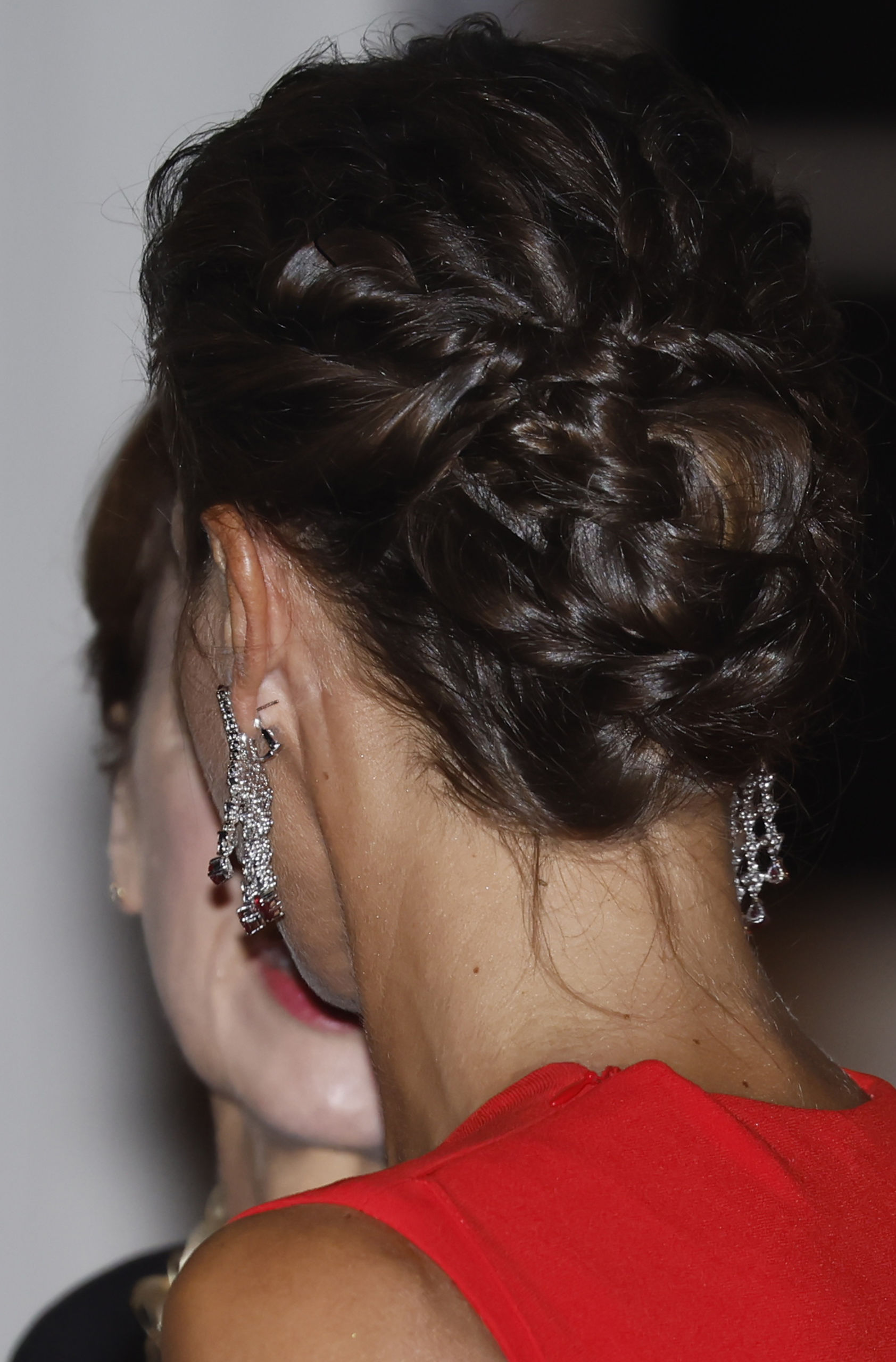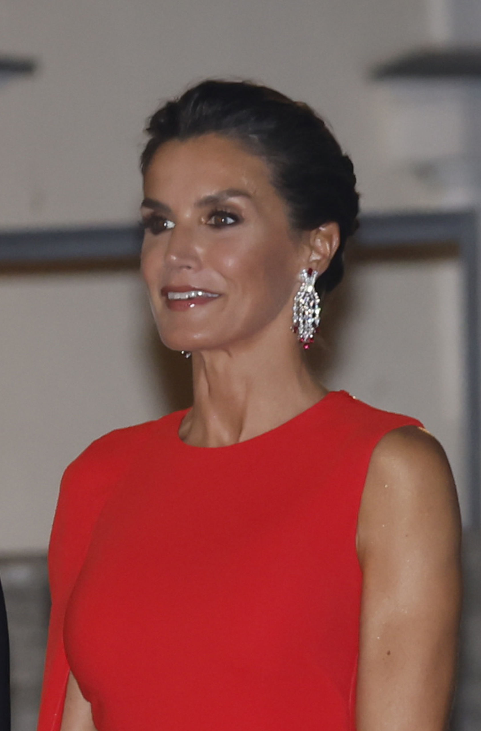 En cuanto a joyas, brilló con unos pendientes en cascada de diamantes y rubíes.