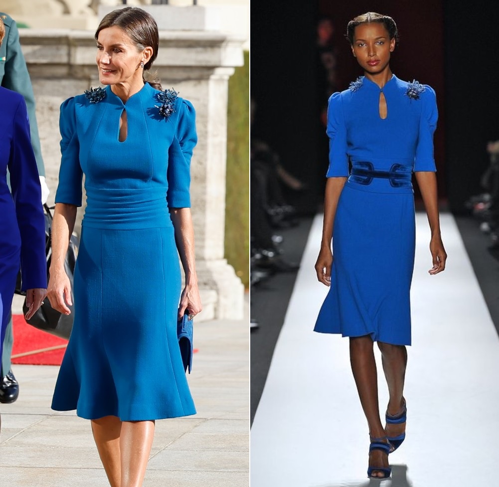 Es la primera vez que la Reina lleva este diseño, a pesar de que pertenece a una colección antigua de Carolina Herrera. Se desconoce si lo guardaba en su armario o la casa de modas lo ha rescatado para ella.