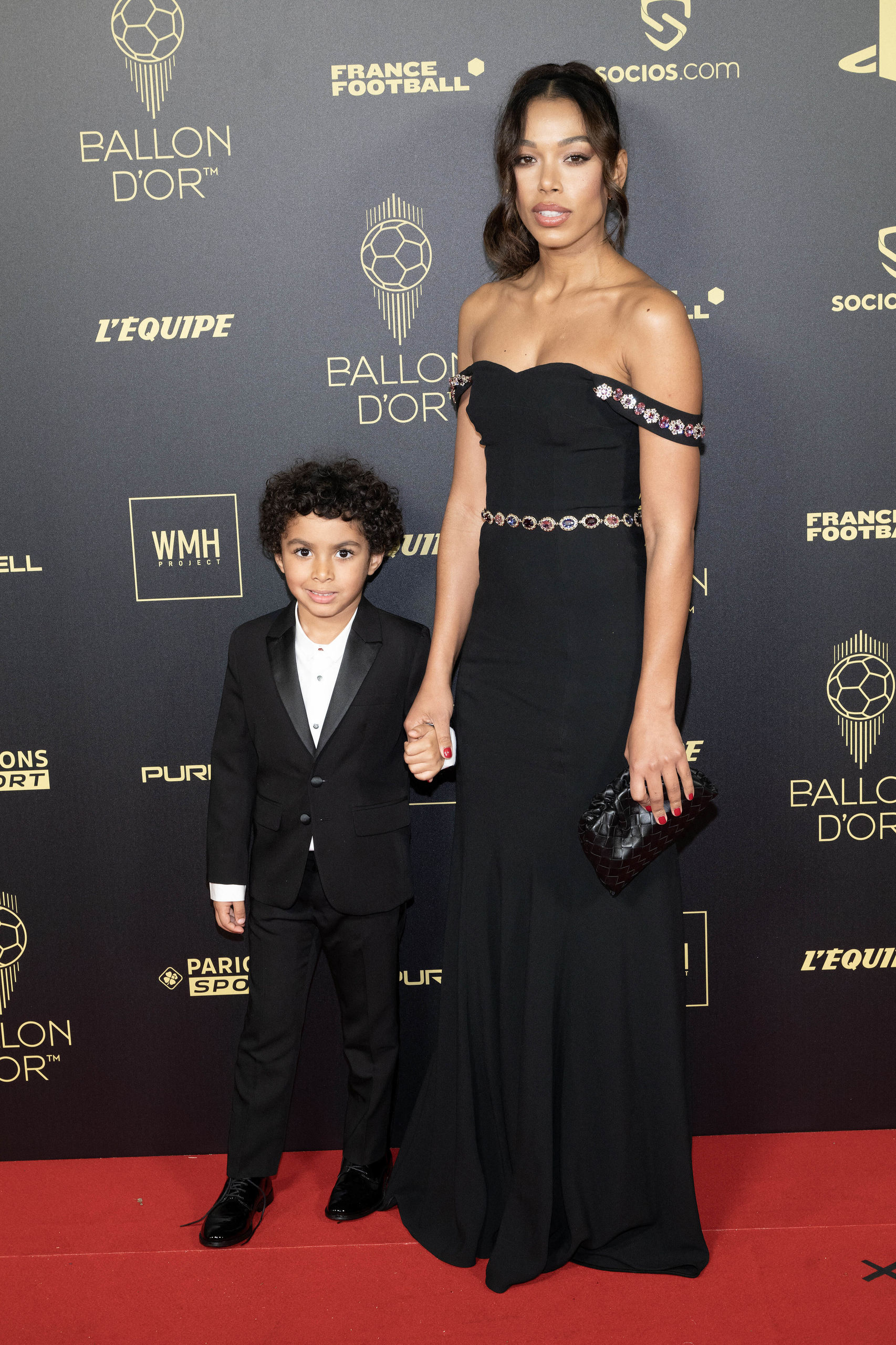 Cora Gauthier, exnovia de Karim Benzema y madre de su hijo Ibrahim, con un elegante vestido negro.