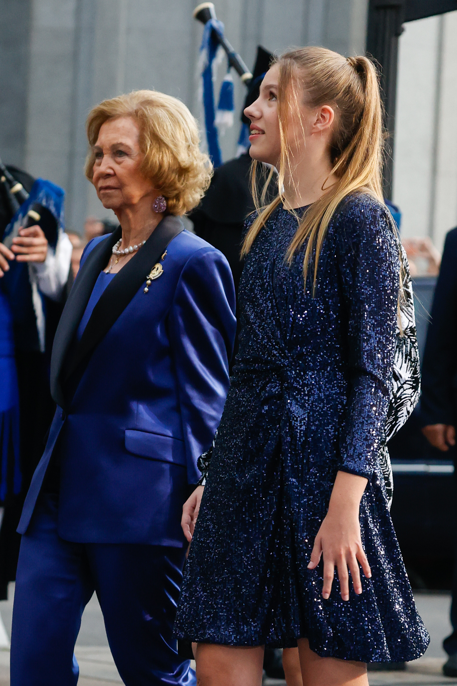 La Infanta, igual que su abuela la reina Sofía, se decantó por el color azul en honor a la bandera de Asturias.