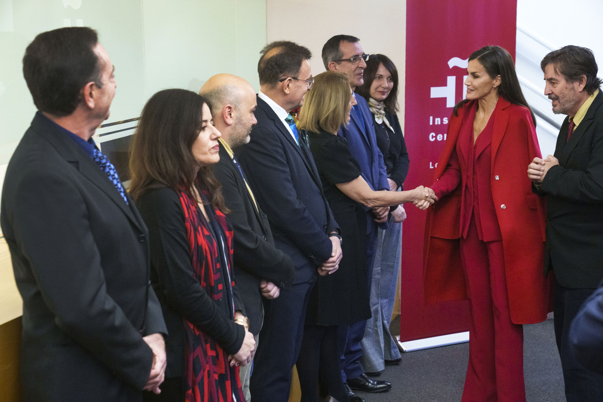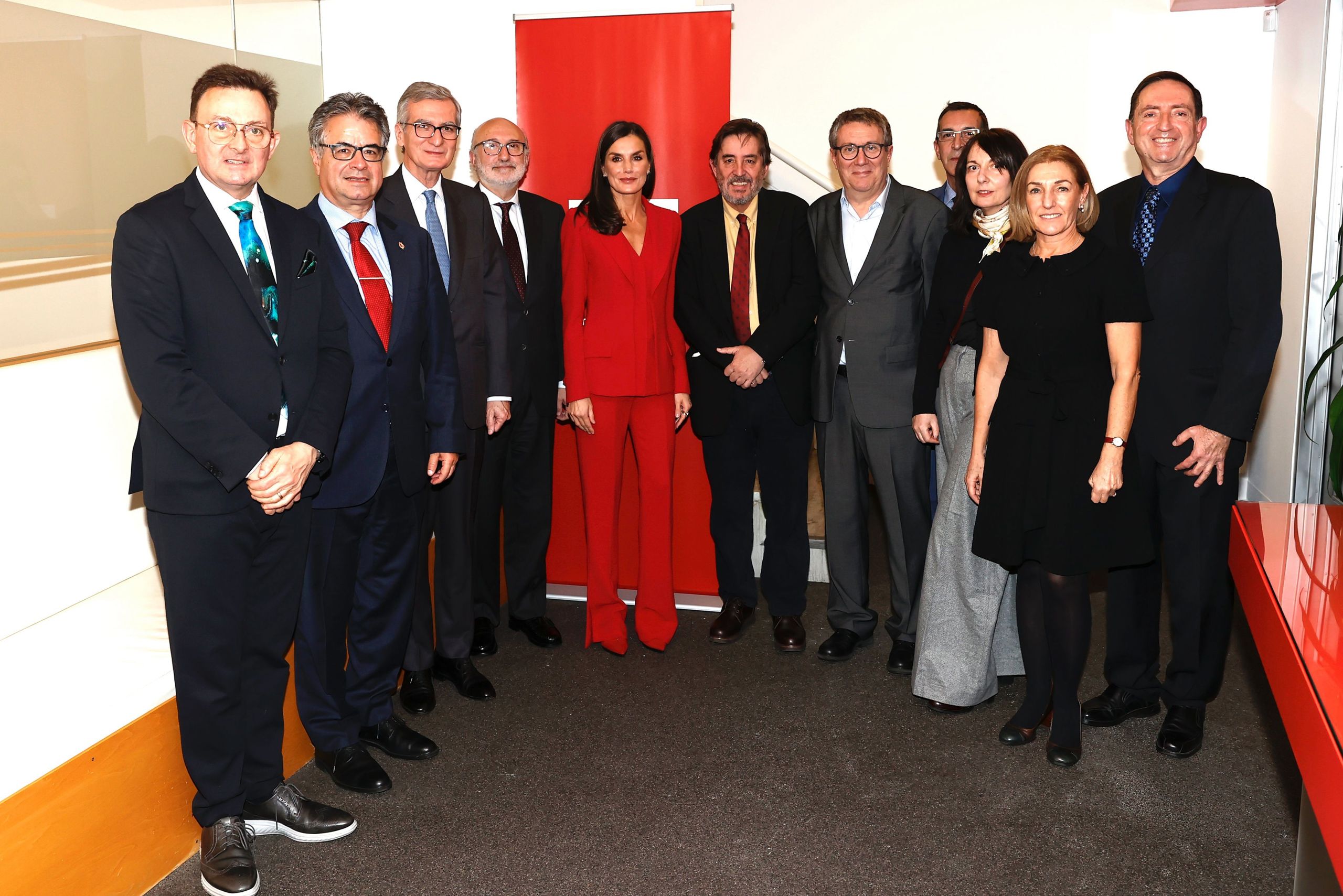 Para la reunión de trabajo, la Reina acertó con un elegante ‘total look’ rojo donde destacó un traje de sastre firmado por Roberto Torretta de la colección otoño-invierno 2017/2018.
