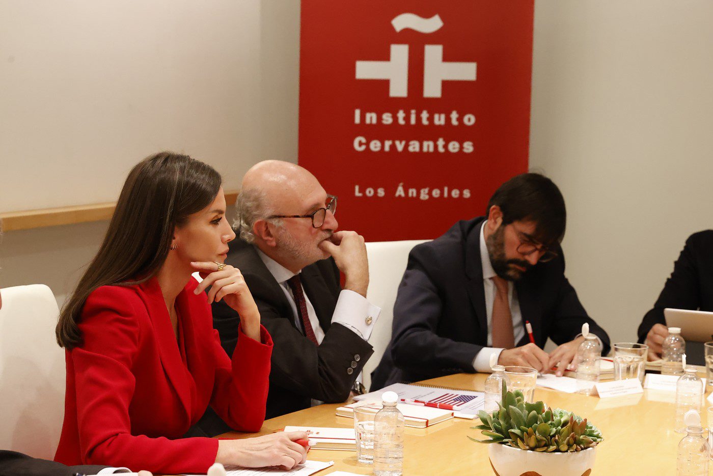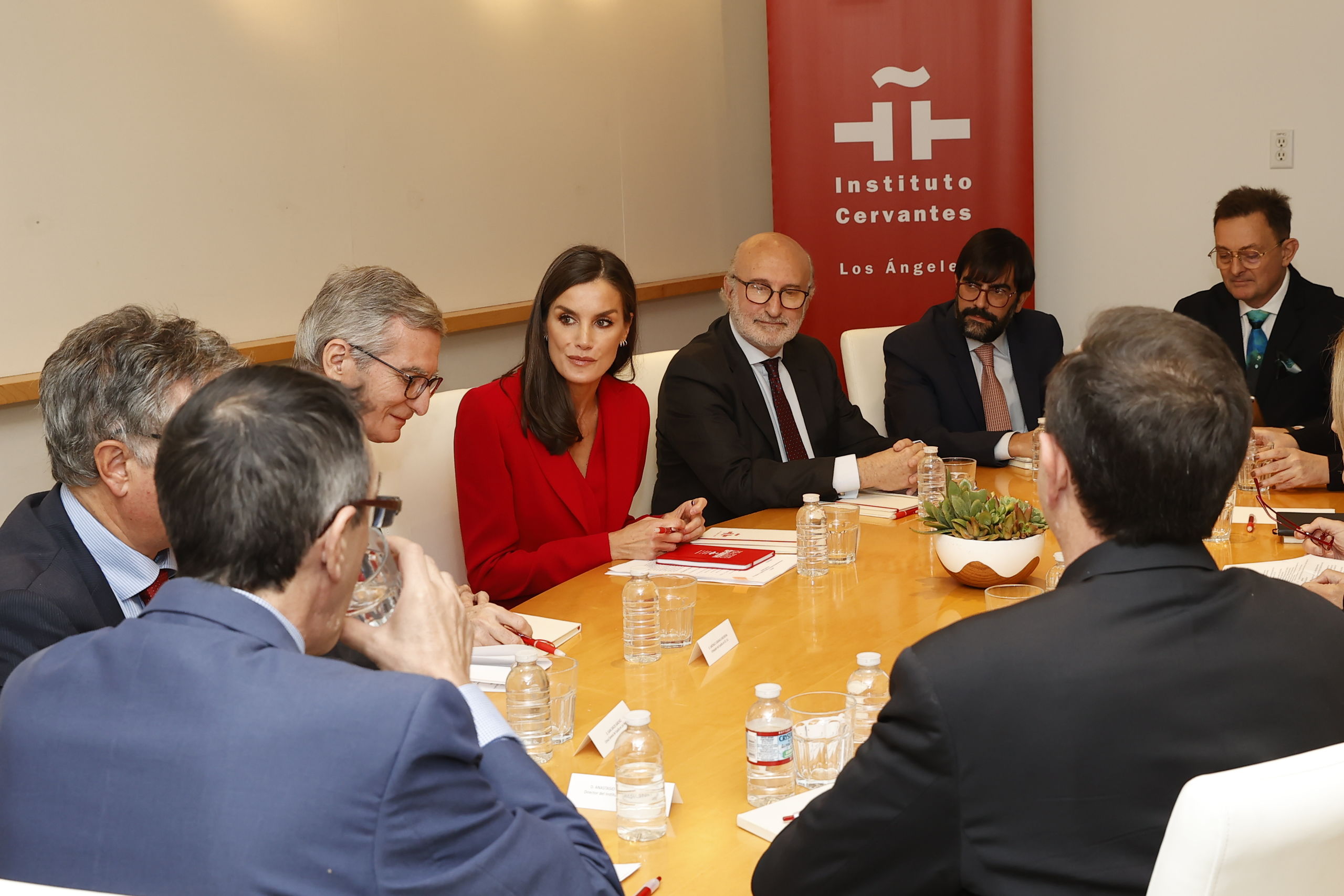 Acompañada por el director del Instituto Cervantes, Luis García Montero, la Reina mantuvo una reunión con los responsables de los centros que la entidad cultural ya tiene en EEUU para analizar la situación del español y las perspectivas de crecimiento en un país donde viven 60 millones de hispanohablantes.
