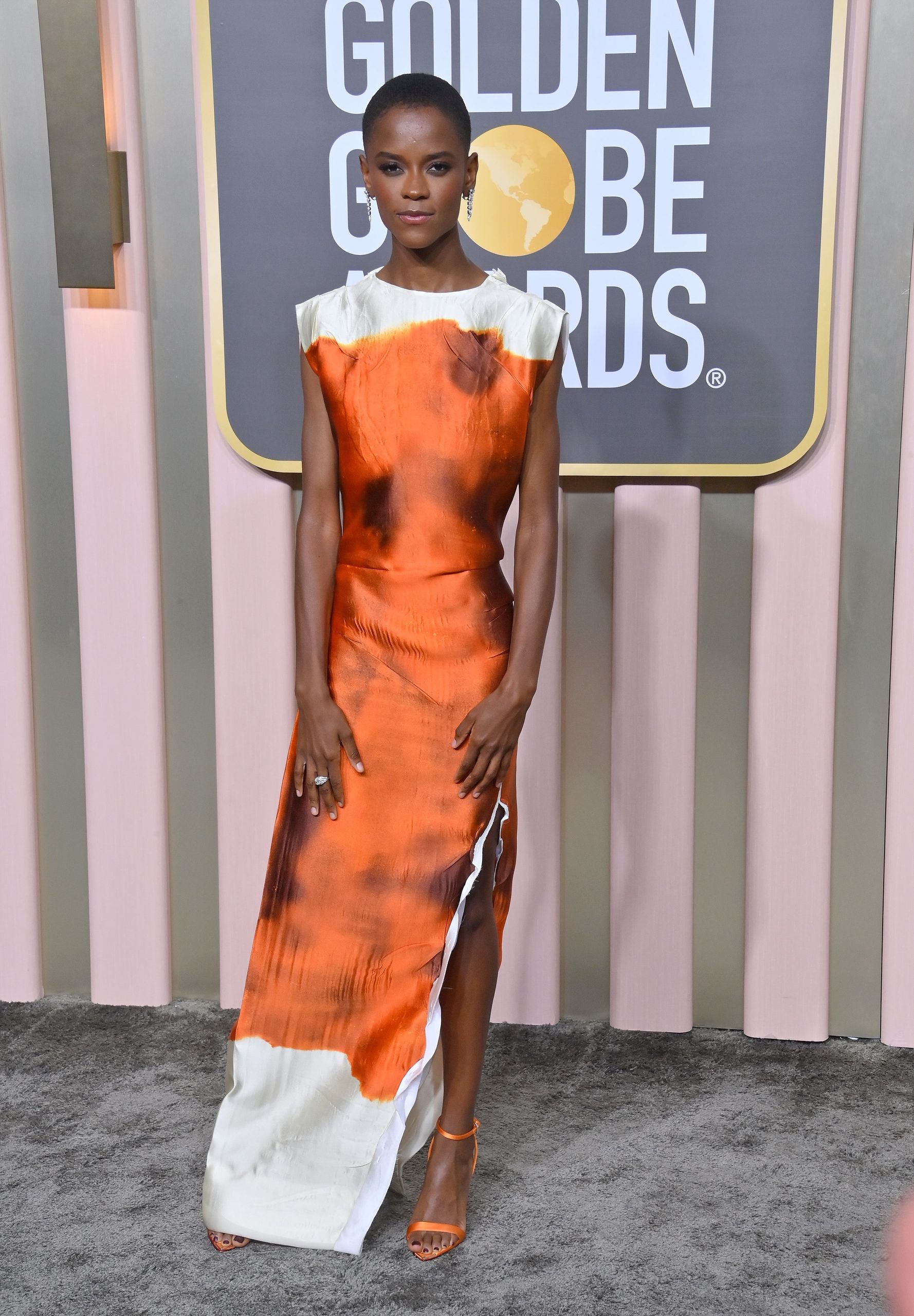 Letitia Wright, protagonista de la última película de ‘Black Panther’, con un vestido estampado de Prada.