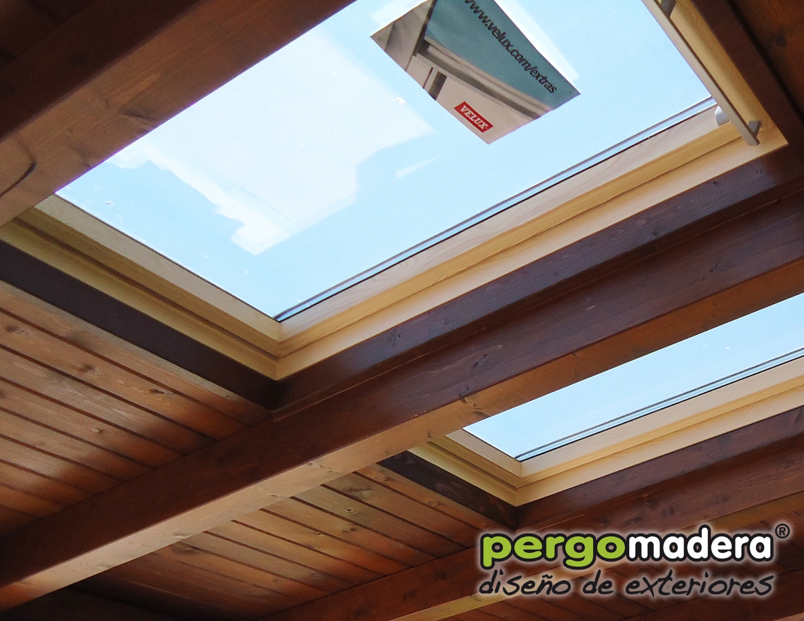 Por otro lado, si aun así se tiene miedo de que las cubiertas de madera para el porche resten luminosidad a todo el conjunto, existe la posibilidad de incorporar una ventana tipo velux, como vemos en la siguiente fotografía.