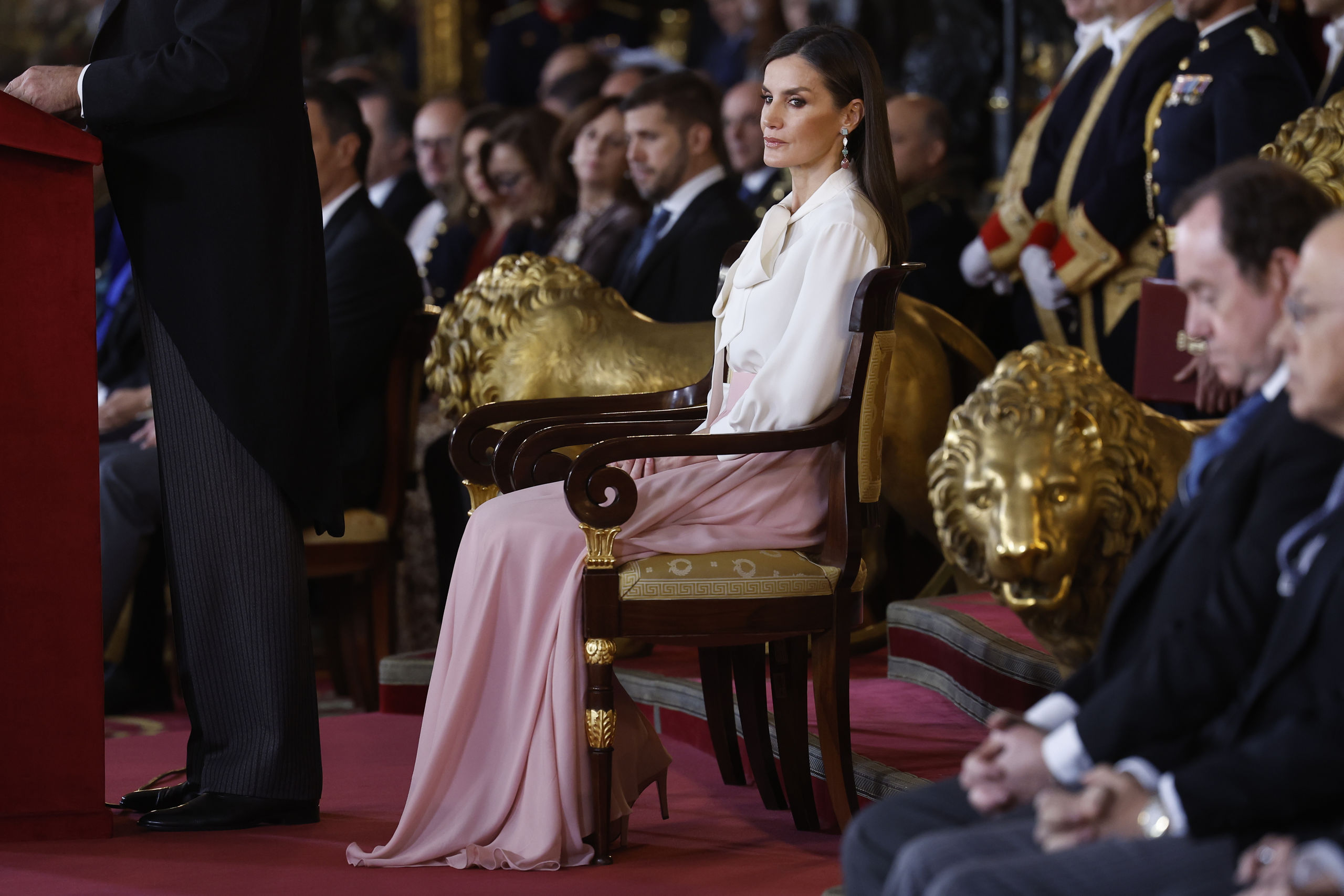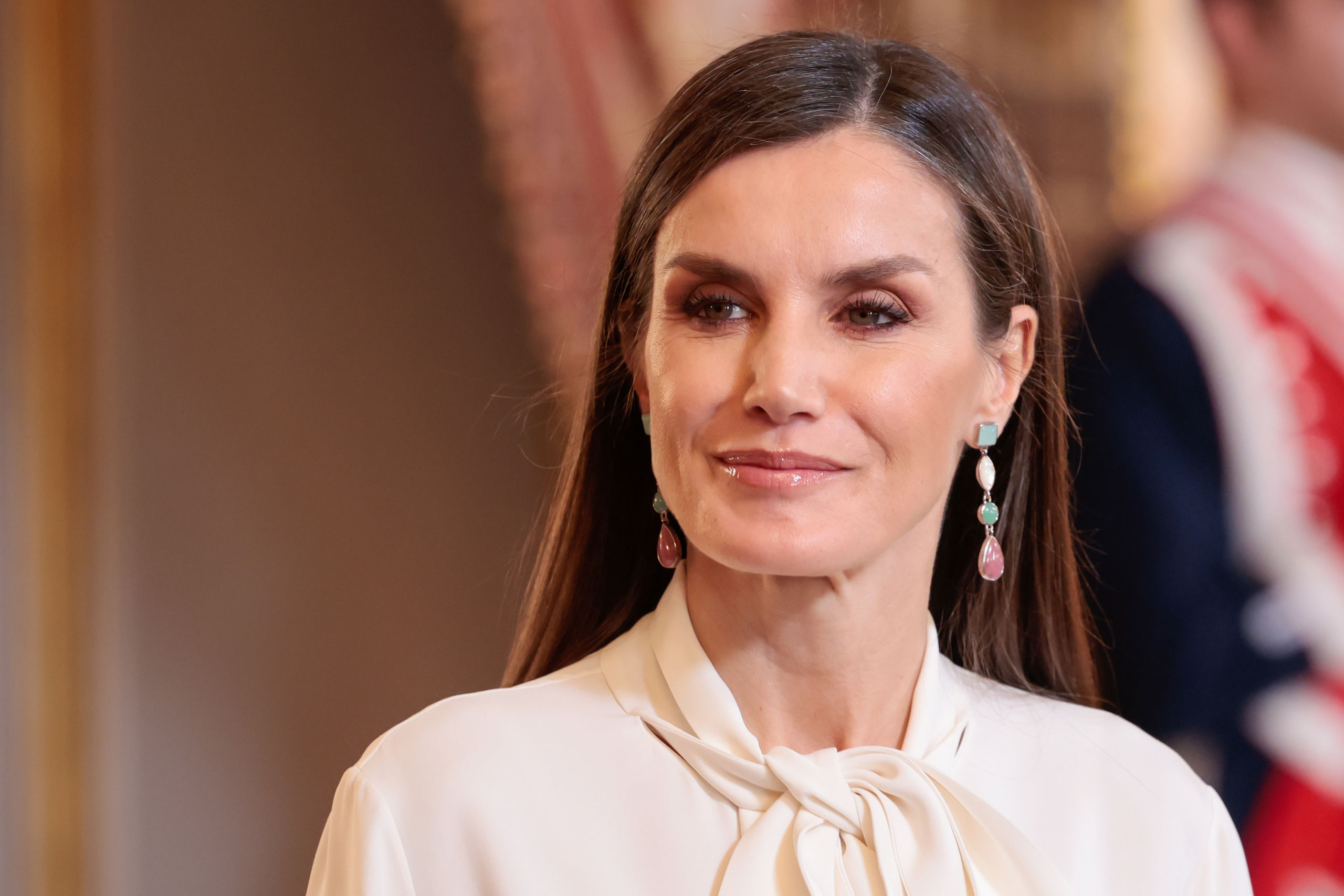 La reina Letizia, de largo y con un look muy romántico en la recepción al cuerpo diplomático