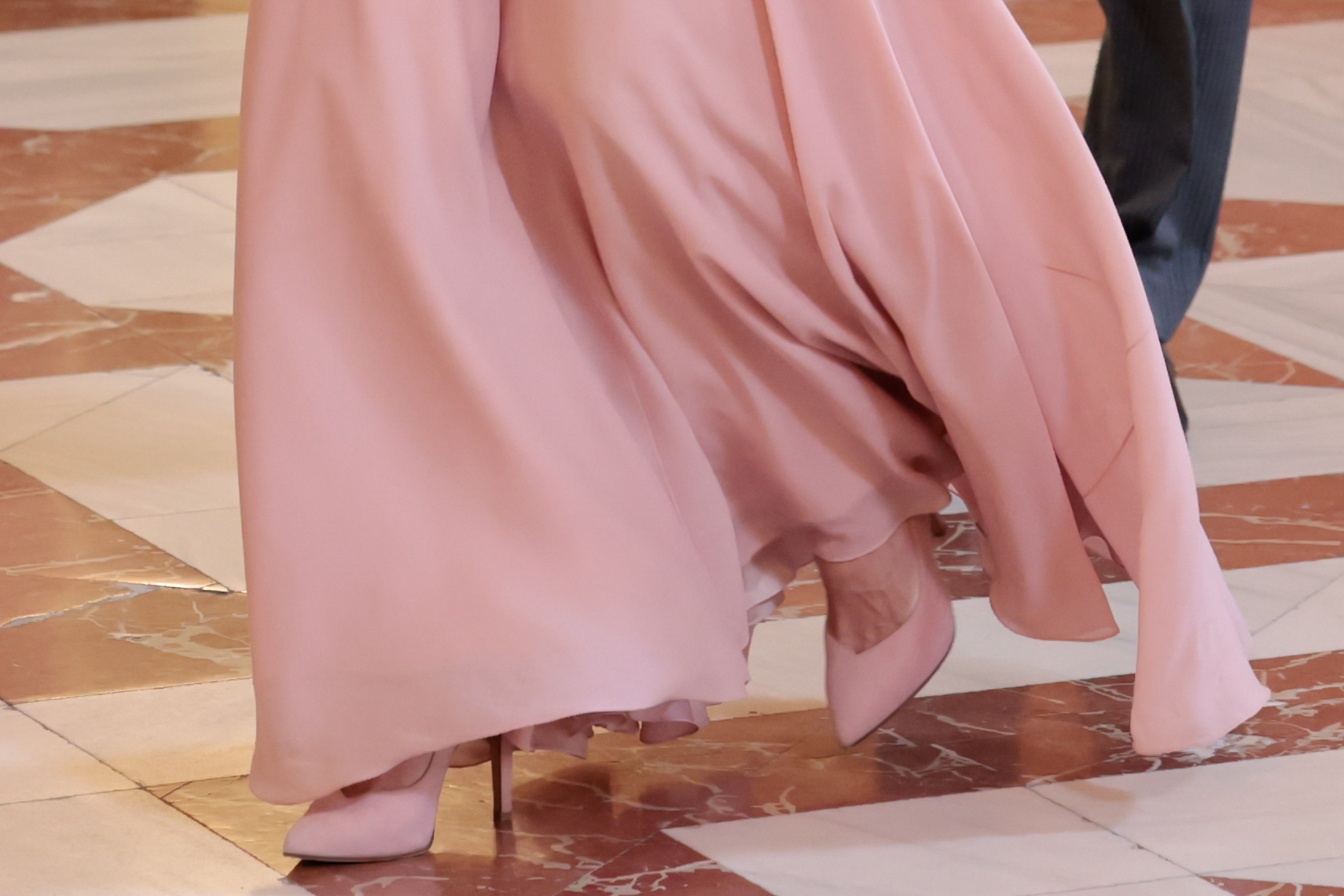 Los zapatos, aunque no se vieron en todo momento, son salones rosas de Lodi Shoes.