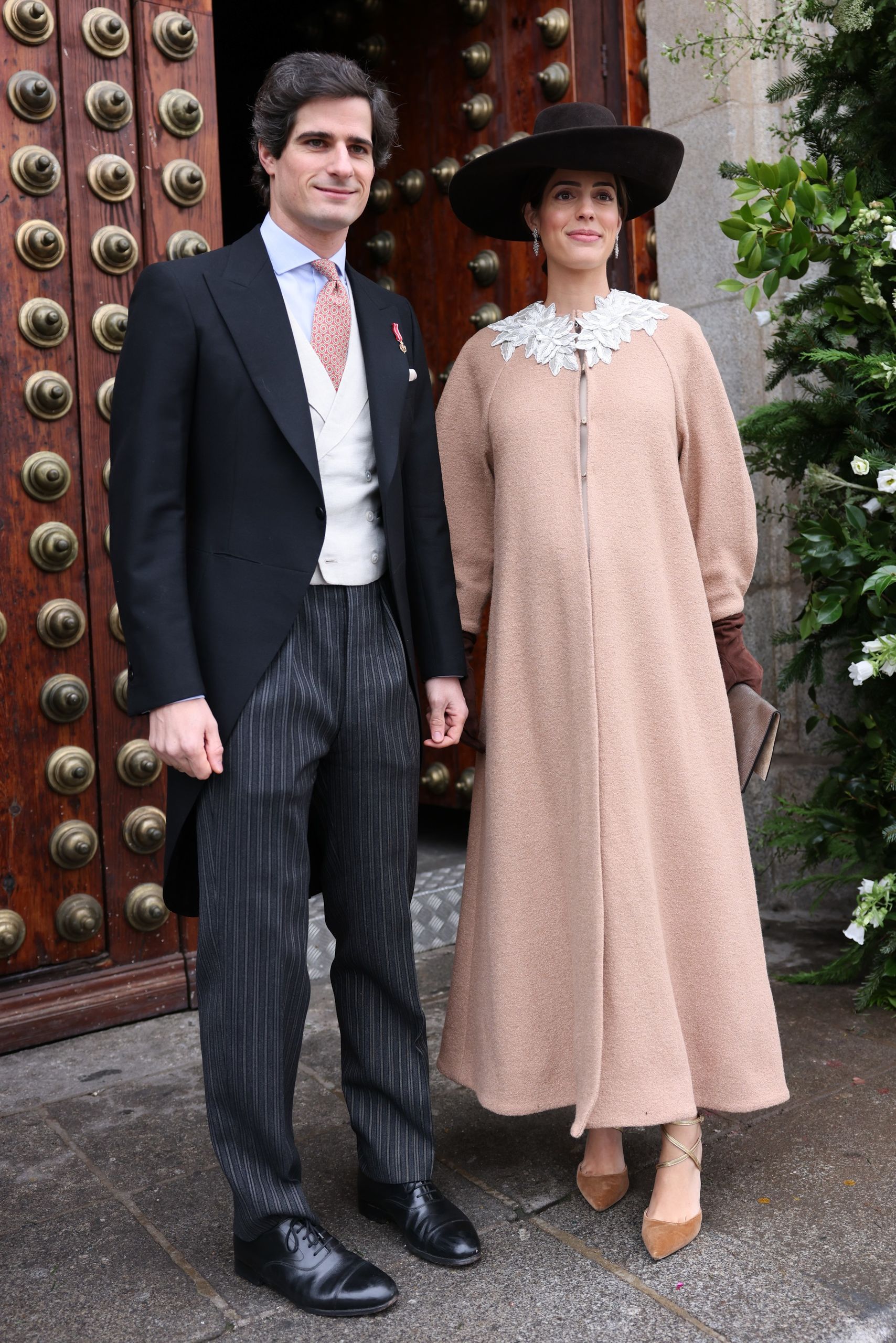 En diciembre de 2022, la duquesa de Huéscar lució este conjunto de abrigo y vestido Hermione de la firma para la boda de Beltrán Palazuelo y Eugenia Hernández.