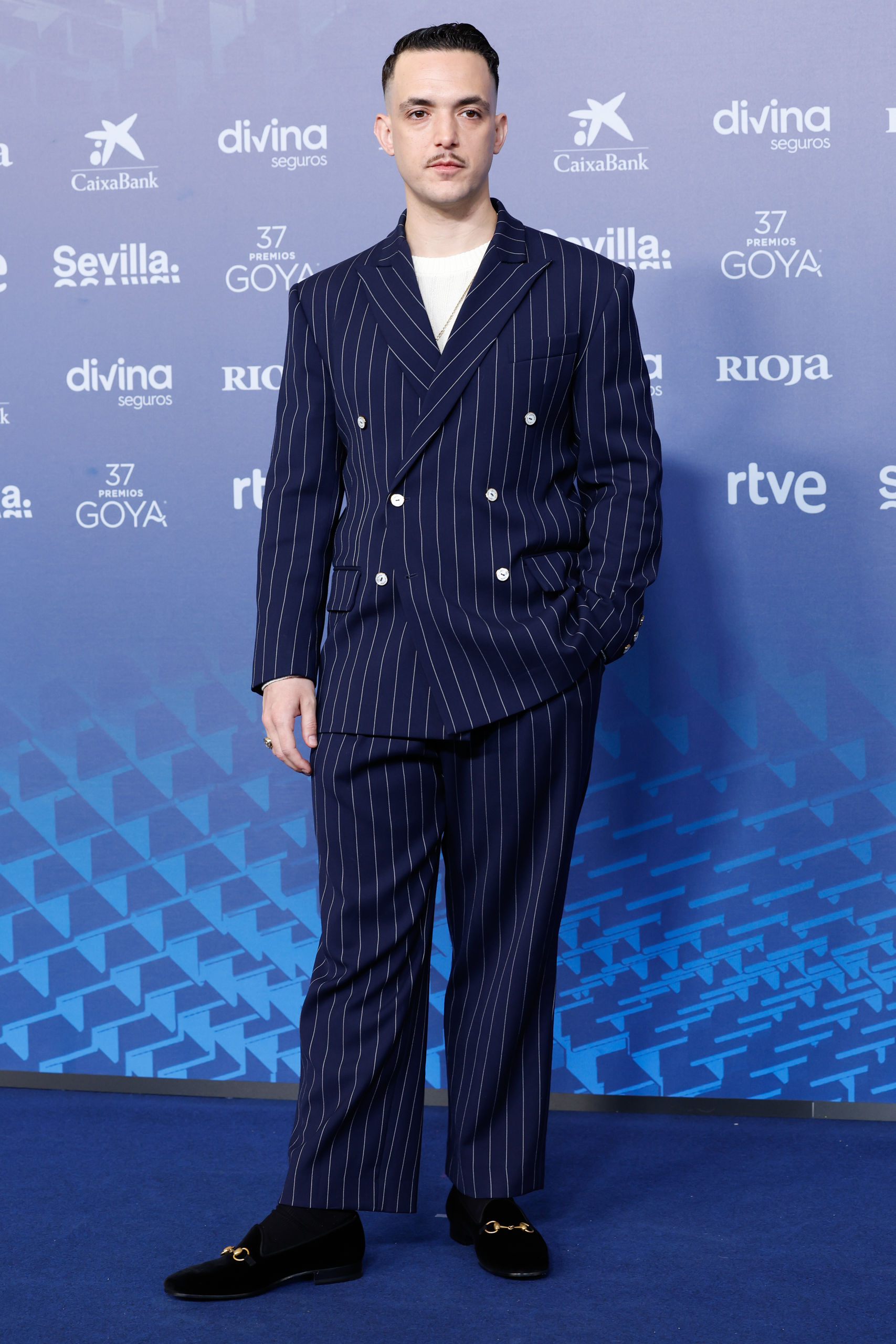 El cantante español, con traje de Maison Margiela.