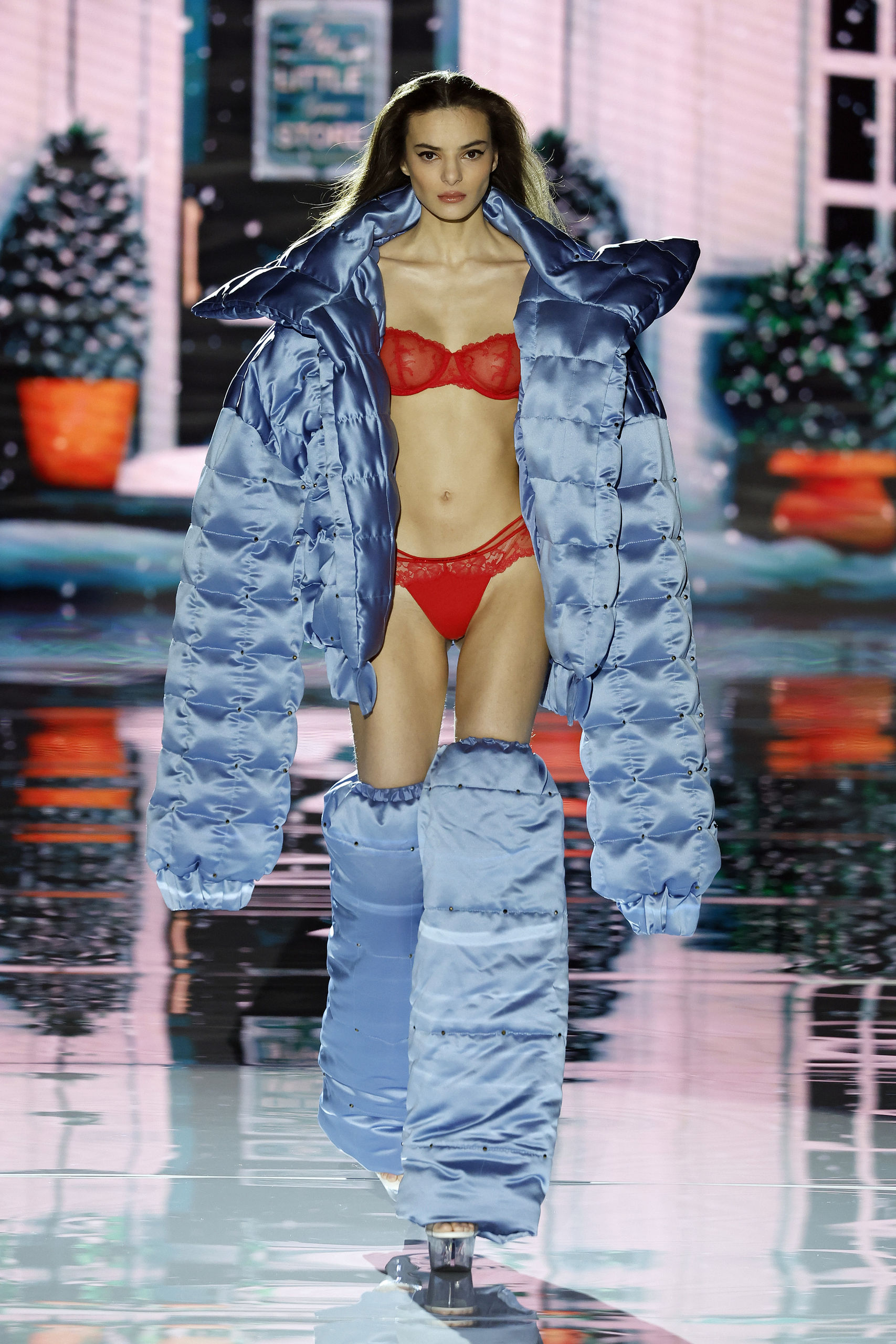 Abrigos y chaquetas de piel ecológica dejan al descubierto delicadas piezas de lencería.