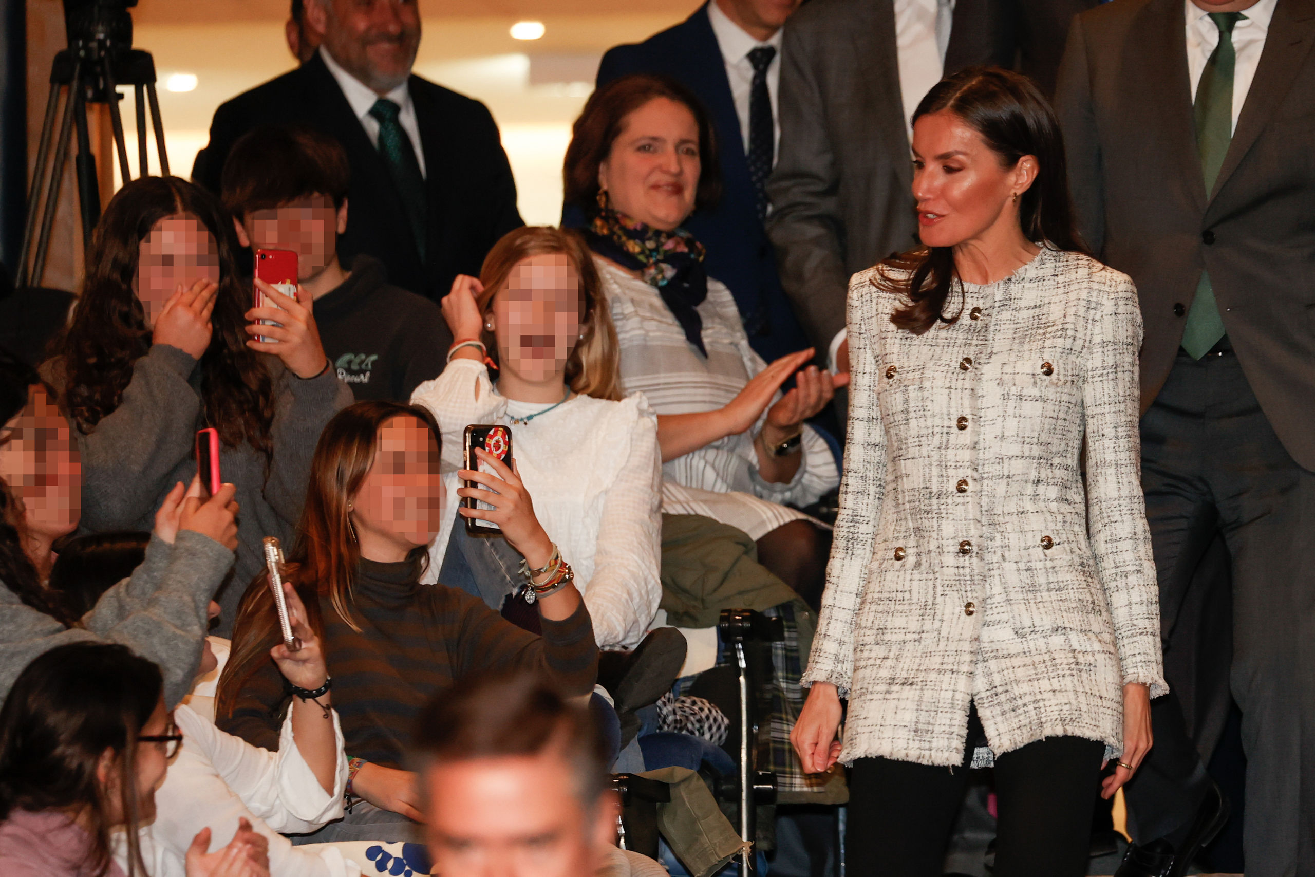 Los asistentes más jóvenes se mostraron entusiasmados con la visita de la Reina y no dudaron en sacar su móviles para captar su llegada. Durante el acto pudieron escuchar algunas de las canciones que integran este proyecto educativo que utiliza la música como disciplina transversal y herramienta para trabajar el desarrollo personal y el bienestar emocional de los jóvenes en las aulas.