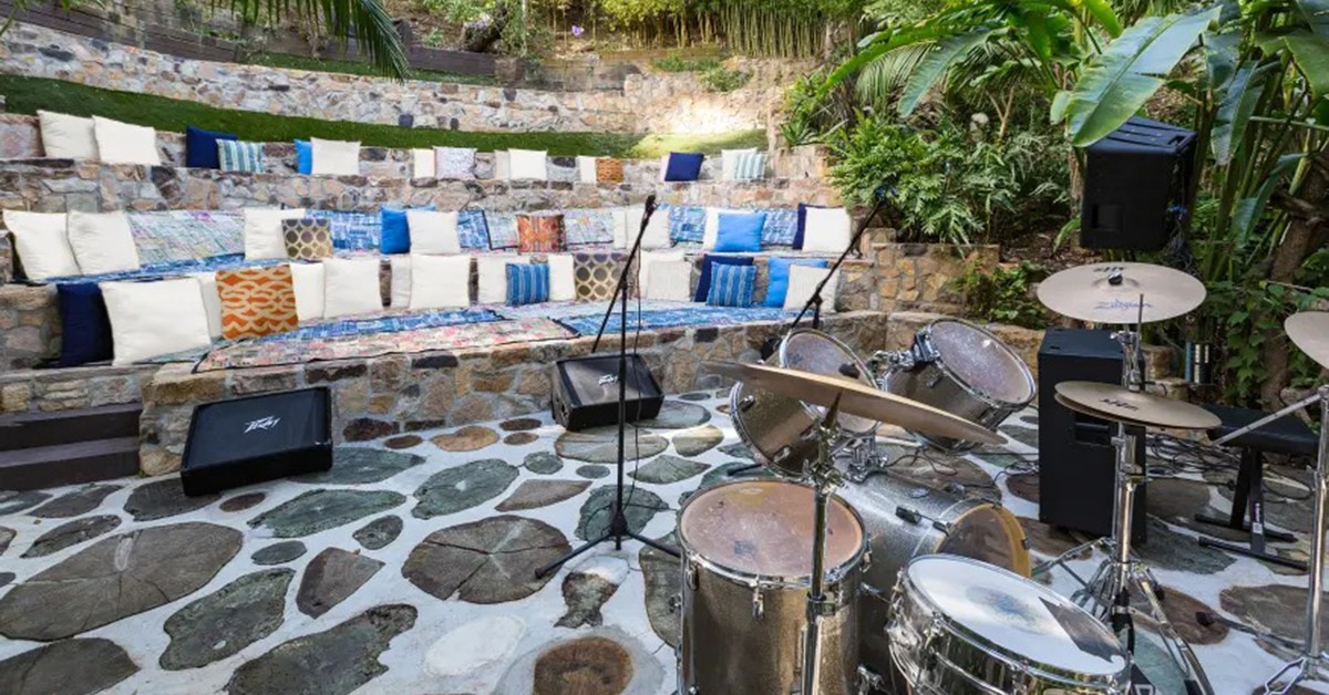 La propiedad cuenta con una casa de invitados adicional, un estudio, un gimnasio, un anfiteatro para 100 personas y un huerto. Además, hay un pabellón de entretenimiento con una cocina completa y una ducha al aire libre.