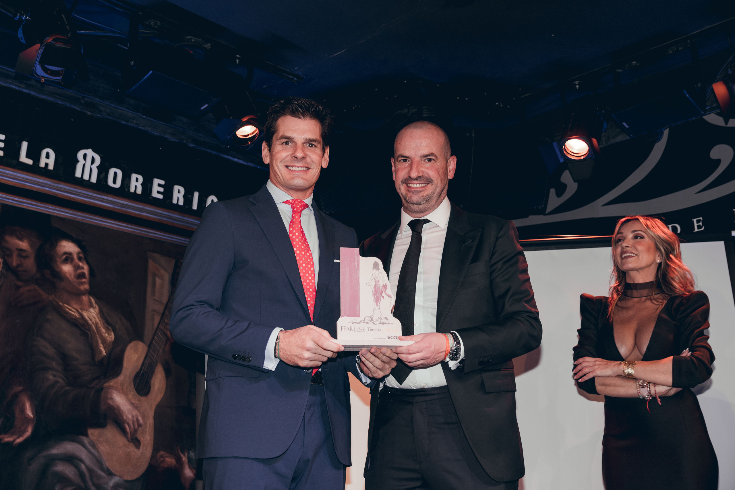 El premio ha recaído en David García Núñez, presidente de MWCC (Madrid Capital Mundial) del Ayuntamiento de Madrid y entregado por Bertie Espinosa, subdirector de Fearless.