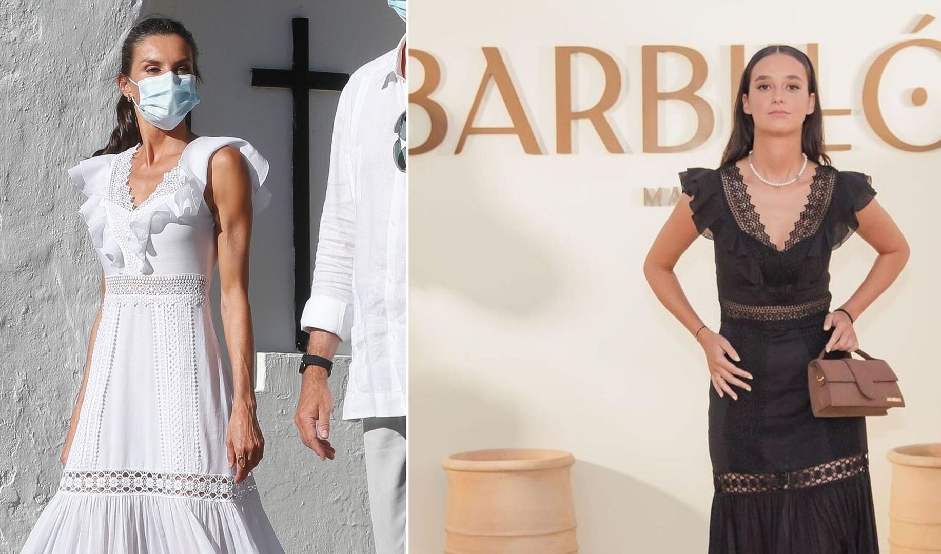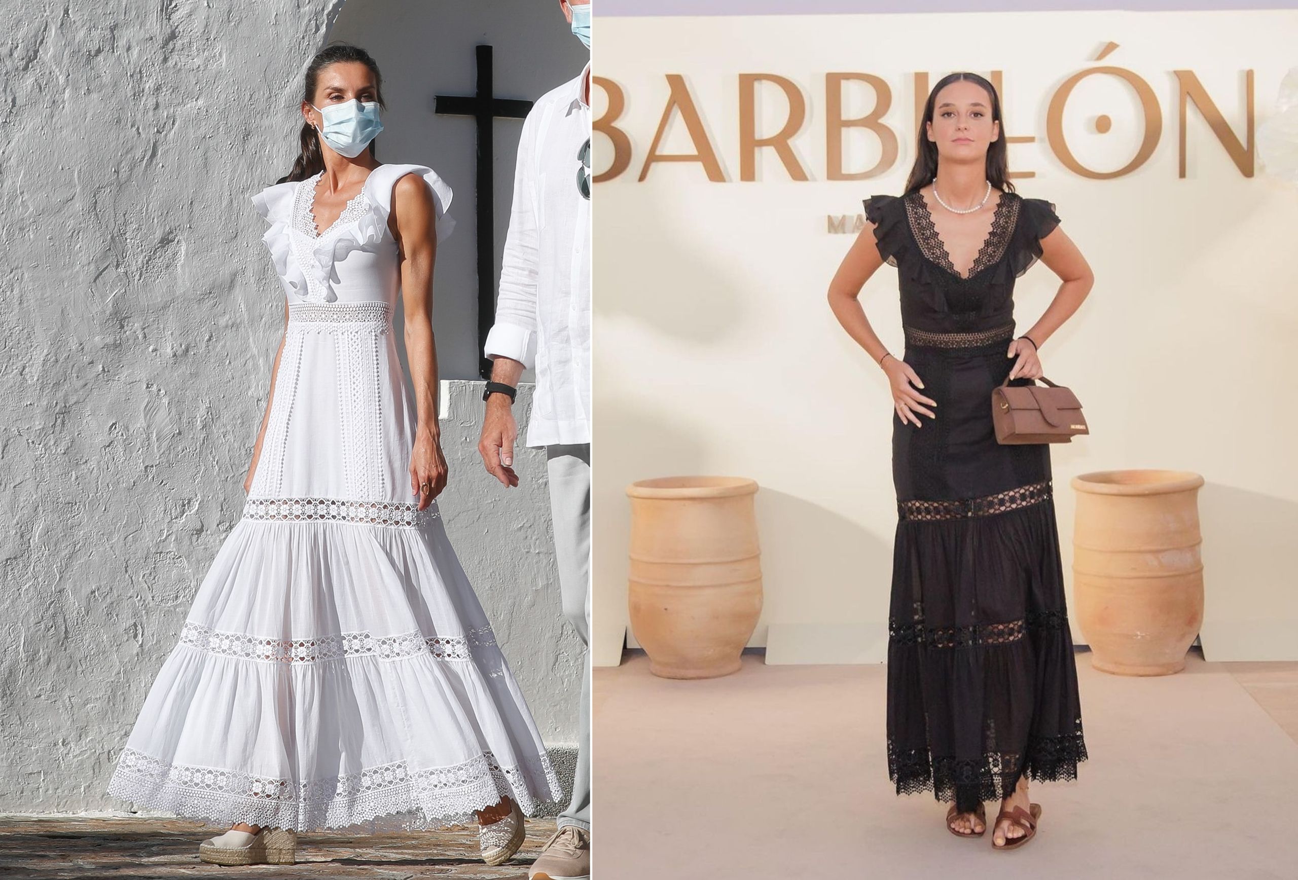 Doña Letizia lo lució en Ibiza para retomar la agenda oficial de la Familia Real tras las vacaciones estivales en Palma. Fue un guiño a la isla pitiusa y su blanco característico, un vestido ibicenco con escote en pico y con volantes y franjas caladas en la cintura y la falda. Su sobrina estrenó la versión en negro tres años después para la inauguración del restaurante Barbillón en la Costa del Sol.