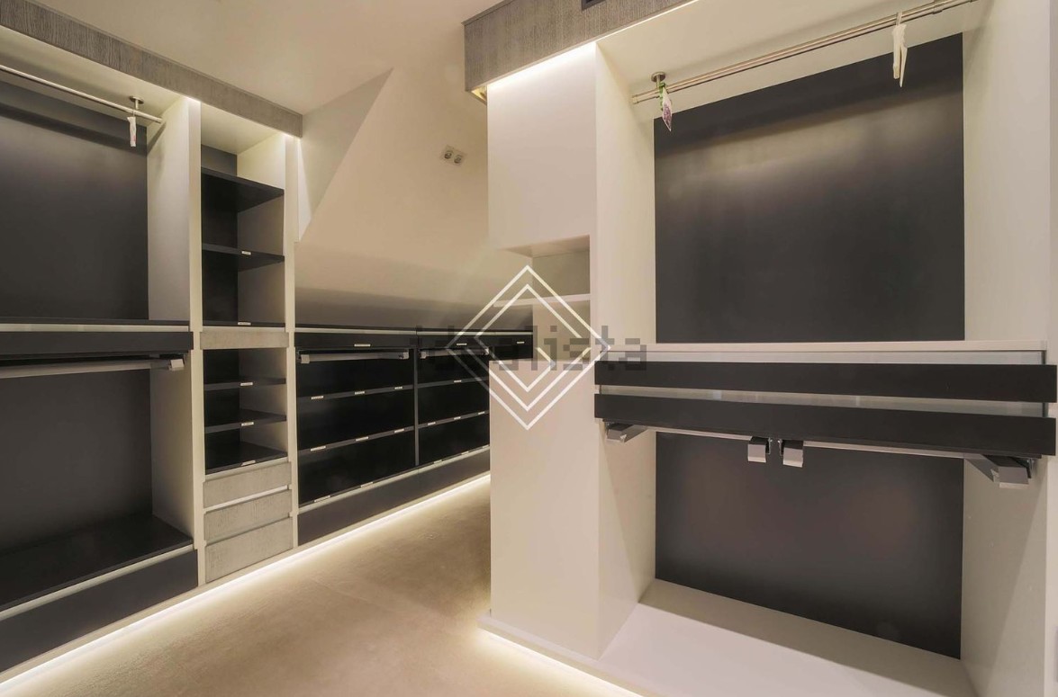 En la segunda planta se encuentra la zona destinada al dormitorio principal: pequeña cocina, enorme dormitorio principal con terraza, despacho y varios vestidores como el que se ve en la imagen.