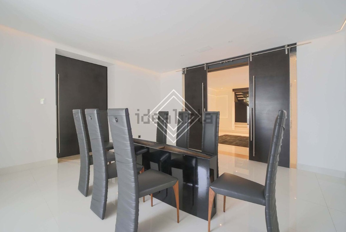 Se accede a través de una imponente puerta principal pivotante de diseño y gran calidad como el resto de los materiales de la casa. Cuenta con un enorme hall de entrada que da paso al salón con grandes ventanales de suelo a techo y acceso al jardín.