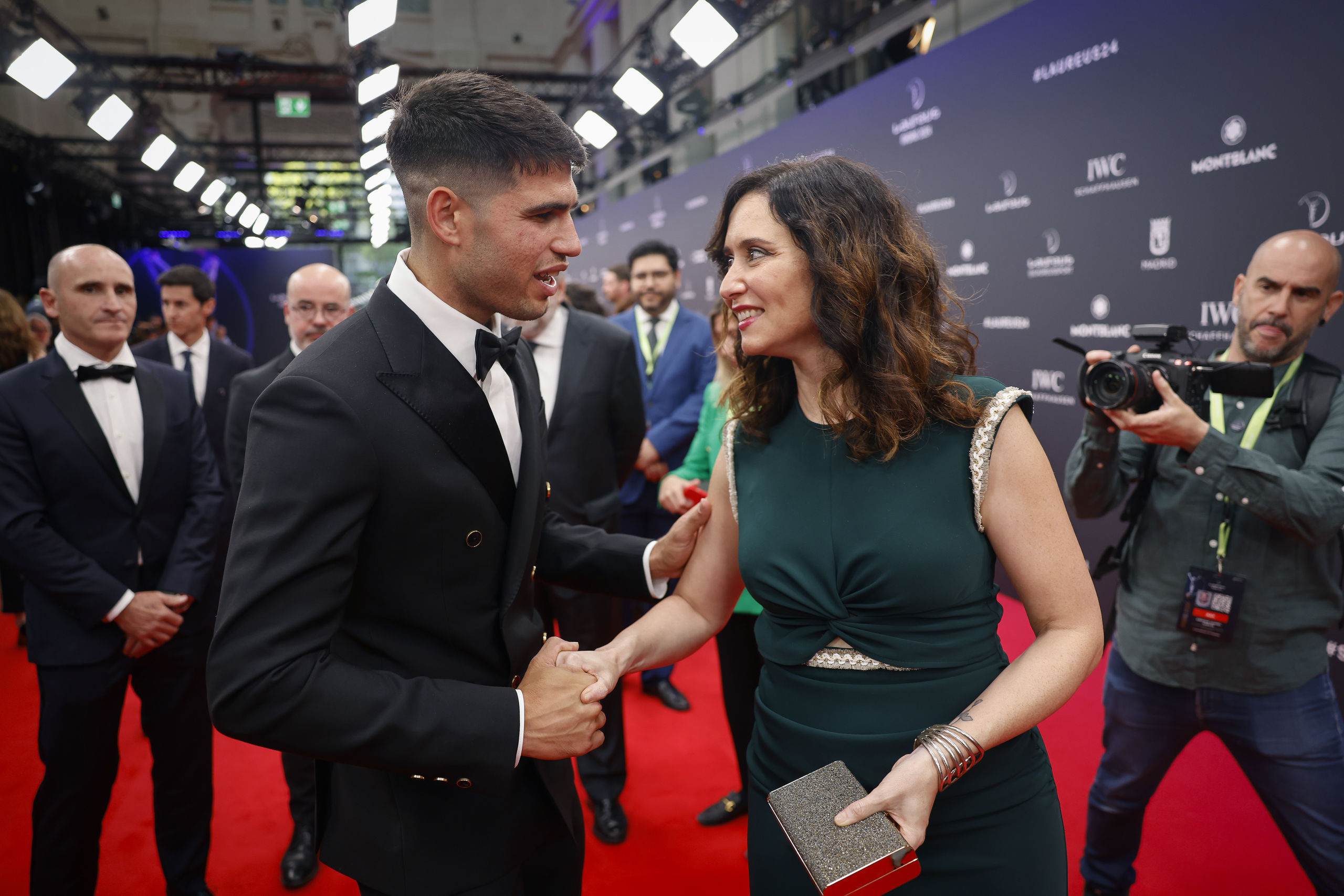 El tenista murciano y la presidenta de la CAM también charlaron durante unos minutos en la alfombra roja previa a los premios que acogió el madrileño Palacio de Cibeles.
