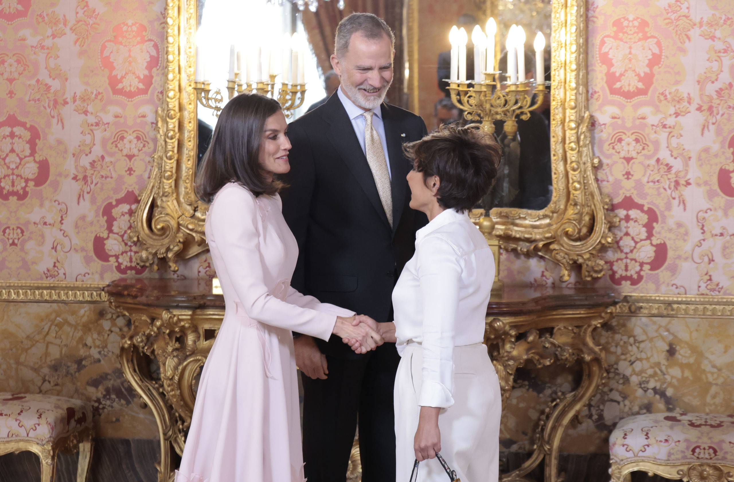 El almuerzo propició el reencuentro público entre la reina Letizia y su gran amiga, la presentadora y escritora Sonsoles Ónega. Se dieron un buen apretón de manos, según dicta el protocolo, y se dedicaron la mejor de sus sonrisas. Ónega, Premio Planeta 2023, recibió el año pasado la visita sorpresa de doña Letizia durante una firma de libros, mostrándole así su apoyo tras las fuertes críticas. La novela Las hijas de la criada fue un best seller el año pasado.