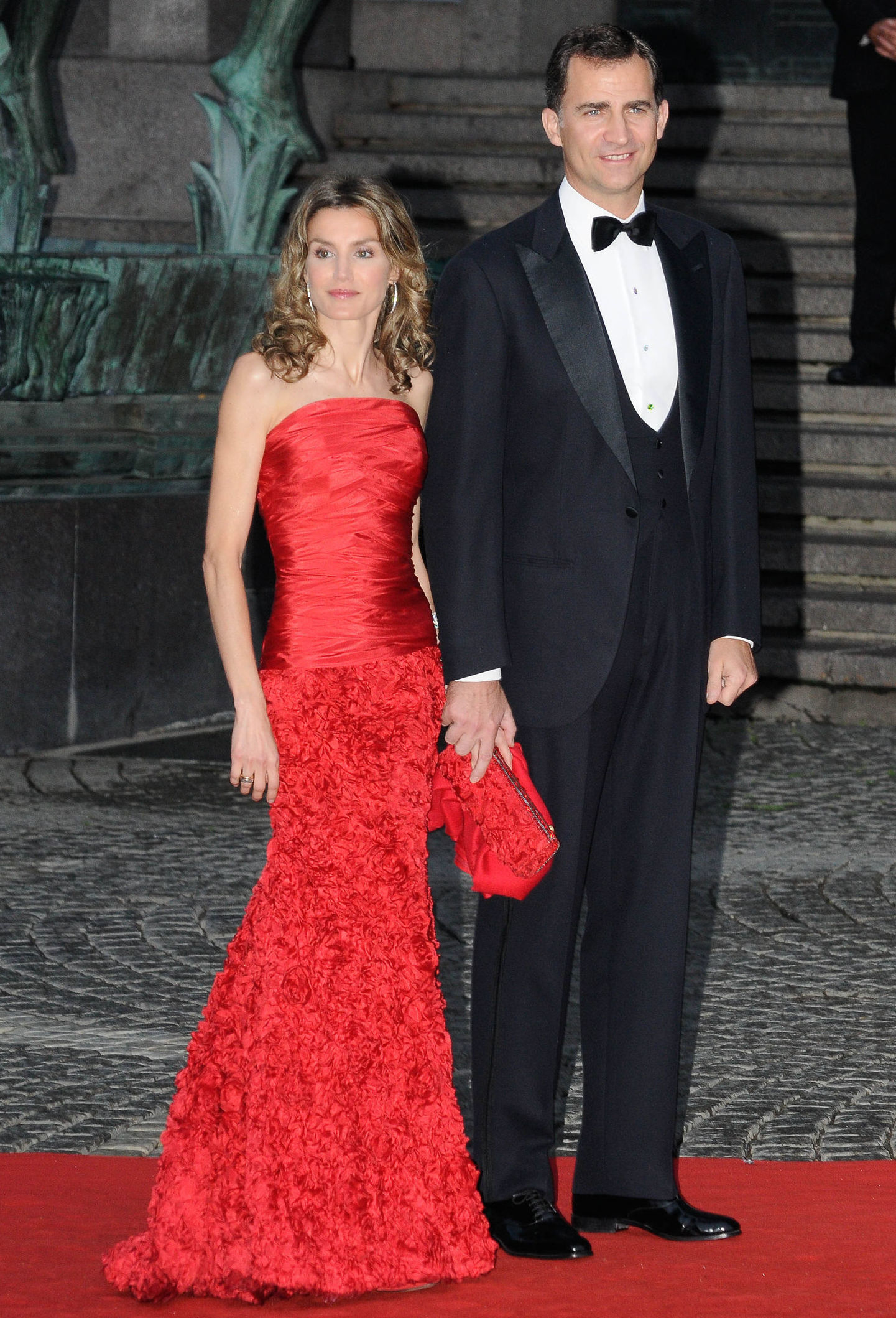 Aunque su primer acto público como futura princesa de Asturias se produjo pocos días después de anunciar su compromiso con Felipe de Borbón, la boda de Federico de Dinamarca y Mary Donaldson fue su gran estreno ante la realeza europea. El día antes del enlace se ofreció un concierto en el Teatro Real de Copenaghe en el que los novios deslumbraron al mundo. Allí comenzó su relación Lorenzo Caprile, modisto de la realeza que diseñó para doña Letizia un dos piezas de gala formado por chaqueta enconsertada y una falda estilo sirena elaboradas con telas de la firma valenciana Rafael Catalá.