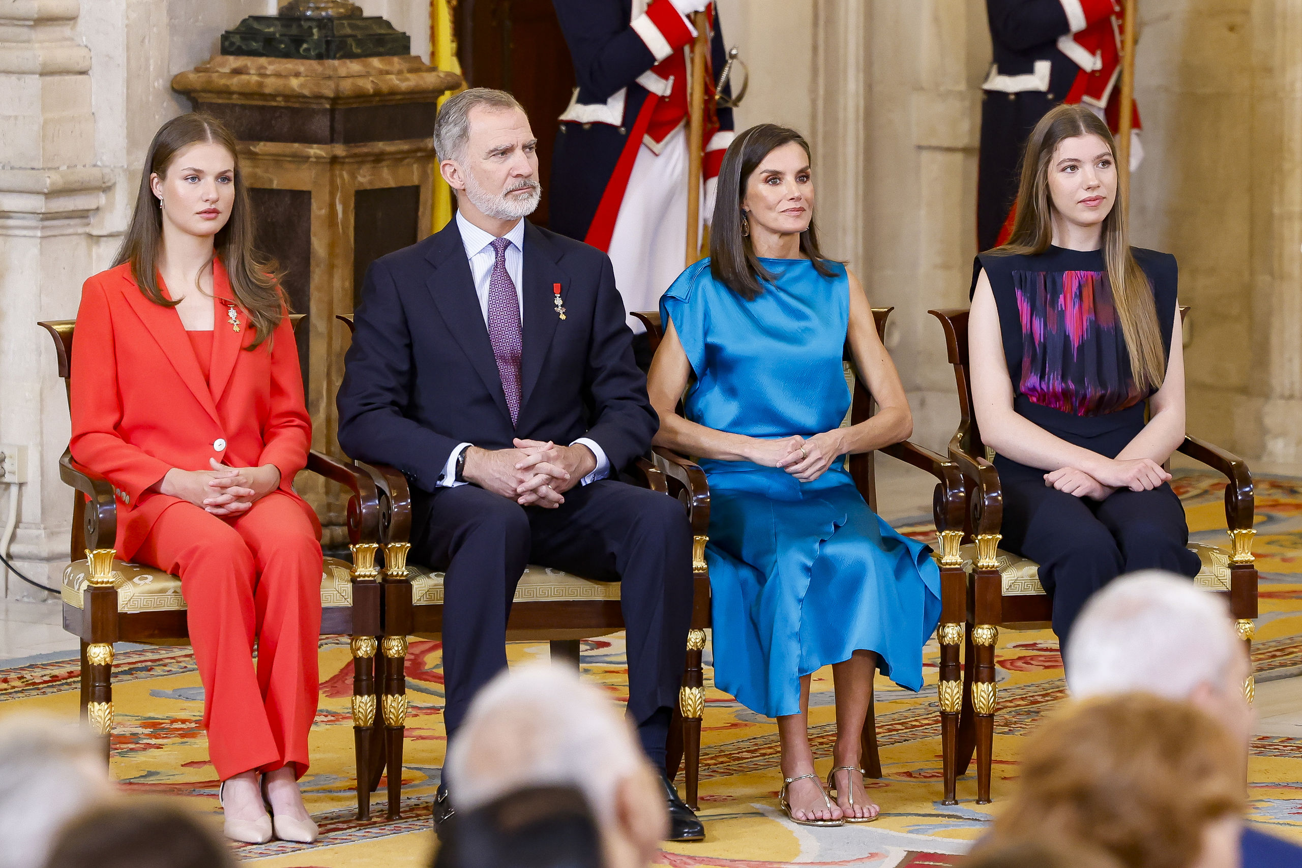 La Familia Real, durante el acto de imposición de condecoraciones de la Orden del Mérito Civil, con motivo del décimo aniversario de la proclamación de Felipe VI