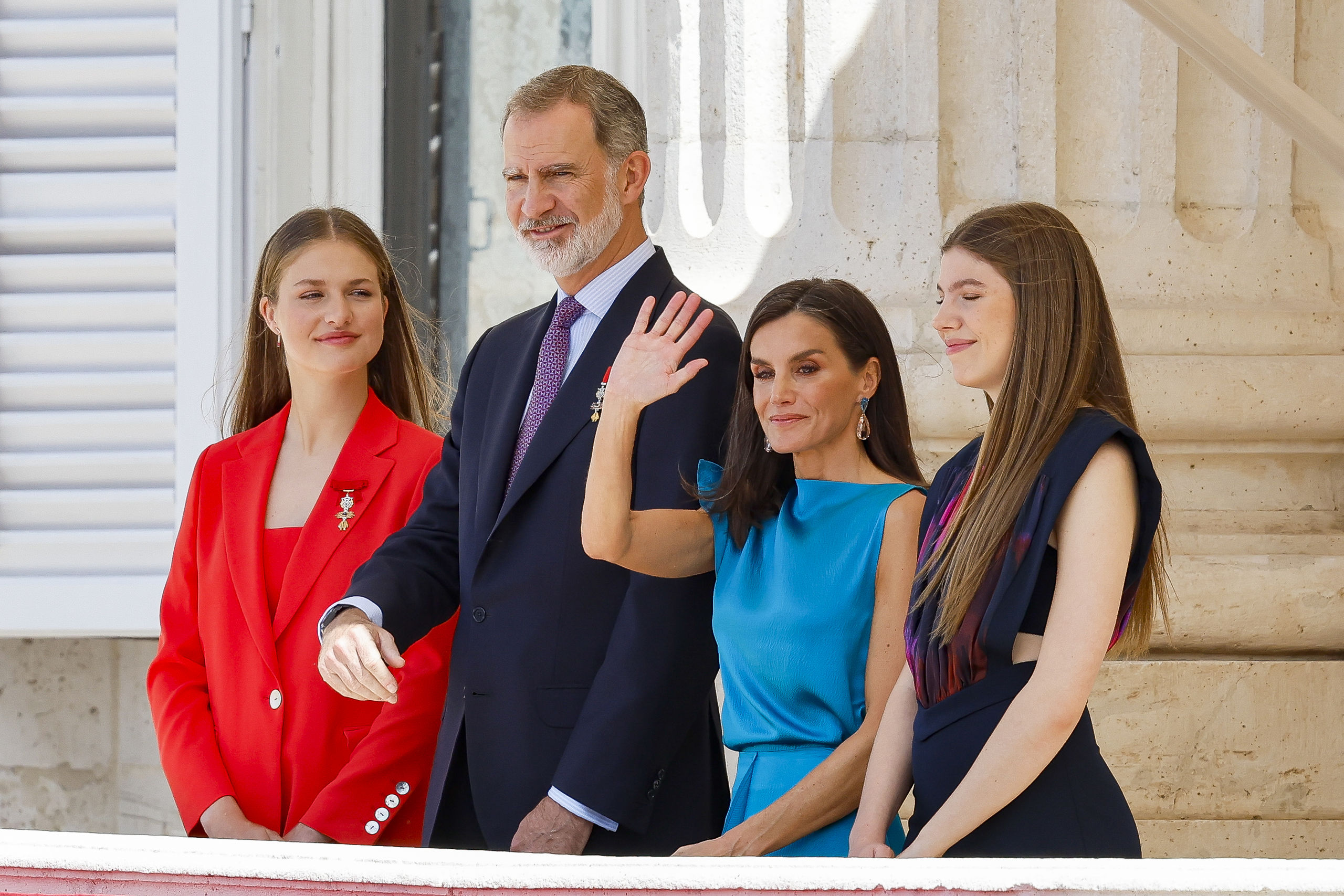 La Familia Real se ha dirigido hasta el Palacio Real para presenciar el relevo solemne de la Guardia Real, al que han llegado en sendos Rolls-Royce históricos y ha sido cuando hemos podido ver los estilismos elegidos para la ocasión.