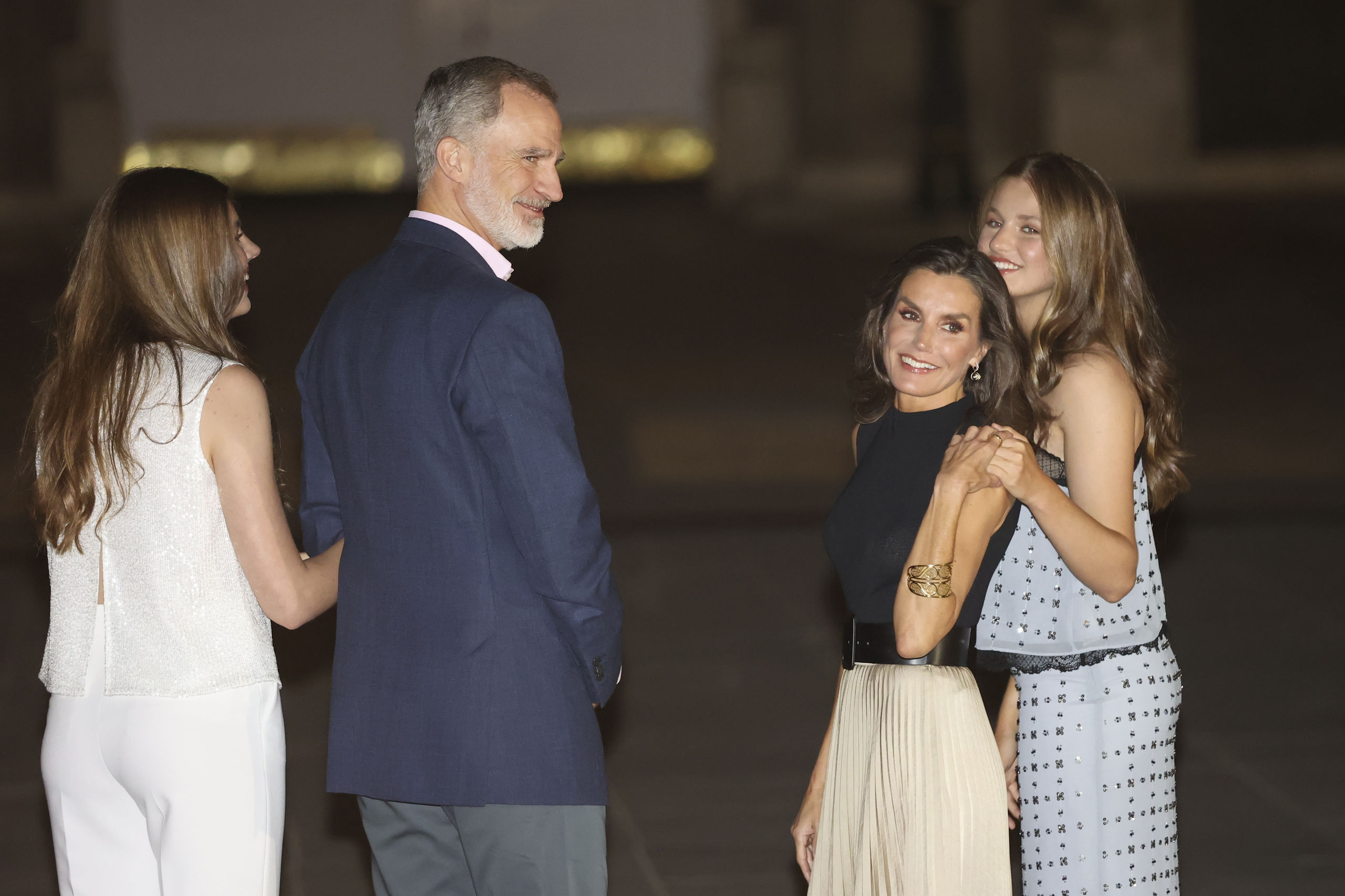 Después de recorrer la Galería de las Colecciones Reales en la que sus Majestades sorprendieron a Leonor y Sofía con su visita, los Reyes y sus hijas llegaban a la Plaza de Oriente donde se daban un baño de masas saludando personalmente a muchas de las personas que habían decidido acompañarles en la celebración. Dando una nueva lección de estilo, la Reina Letizia y la Princesa de Aturias lucían unas cómodas capas en color negro sobre los hombros para intentar combatir la bajada de temperaturas a última hora de la noche.
