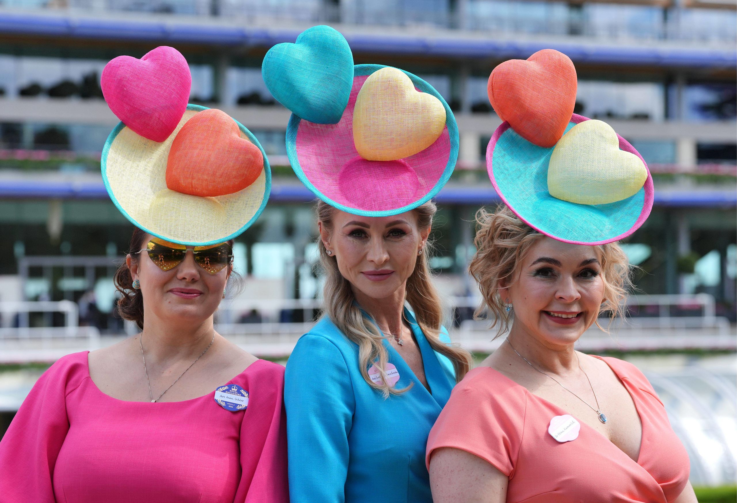 Un grupo de asistentes a Royal Ascot que comparten bolso Lady Dior, collar con cruz, extensión de pestañas, cirujano plástico, lazos por doquier y modelo minifaldero, muy discretas y sencillas con un sus modelos más propios para una despedida de soltera que para asistir a una carrera de caballos.