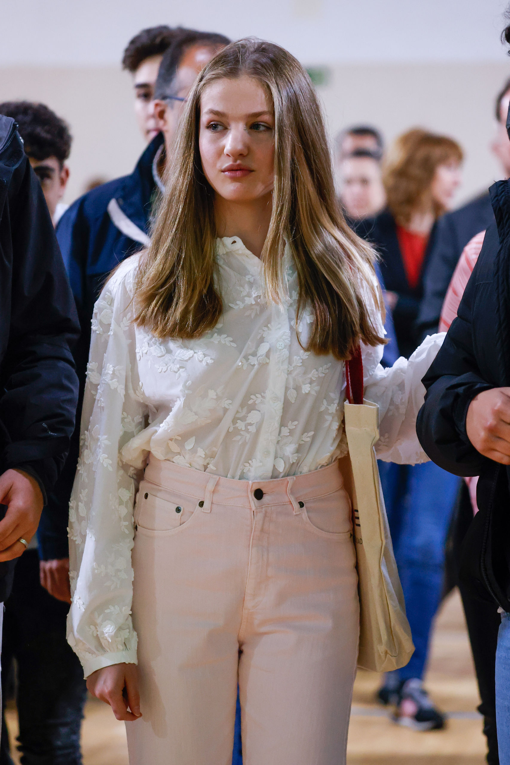 Fue en 2022 cuando los españoles pudimos desprendernos de las mascarillas que la pandemia del covid-19 trajo a nuestras vidas. Acostumbrados a ver a la princesa Leonor con ella en los actos oficiales, aquel año pudimos verla a cara descubierta y convertida ya en una toda una adolescente. Fue durante una jornada sobre el uso seguro de internet y del teléfono móvil en los más jóvenes en un instituto de la localidad madrileña de Leganés, donde se mostró muy tímida ante las cámaras por la expectación.