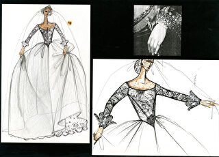 "La reina Letizia ha cedido ocho piezas cosidas por Caprile", explica Martínez de la Pera. Entre ellas, una falda mantón de Manila en negro con flores blancas que estrenó en 2004 durante su primera visita a Estados Unidos o la chaqueta brocada con pedrería que lució durante la visita del presidente de la Federación de Rusia a Madrid (2006).