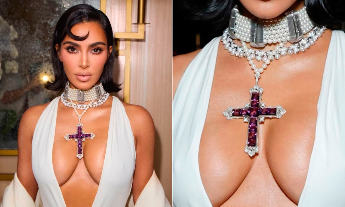 Se entiende que la cruz solo la usó la princesa y, después de su muerte, nunca más se volvió a ver en público, hasta el pasado lunes, cuando Kim Kardashian decidió estrenarla. El colgante en forma de cruz es de estilo fleurée, que se distingue por los detalles de diseño floral, y está engastado con amatistas de talla cuadrada que se acentúan con diamantes de talla circular.