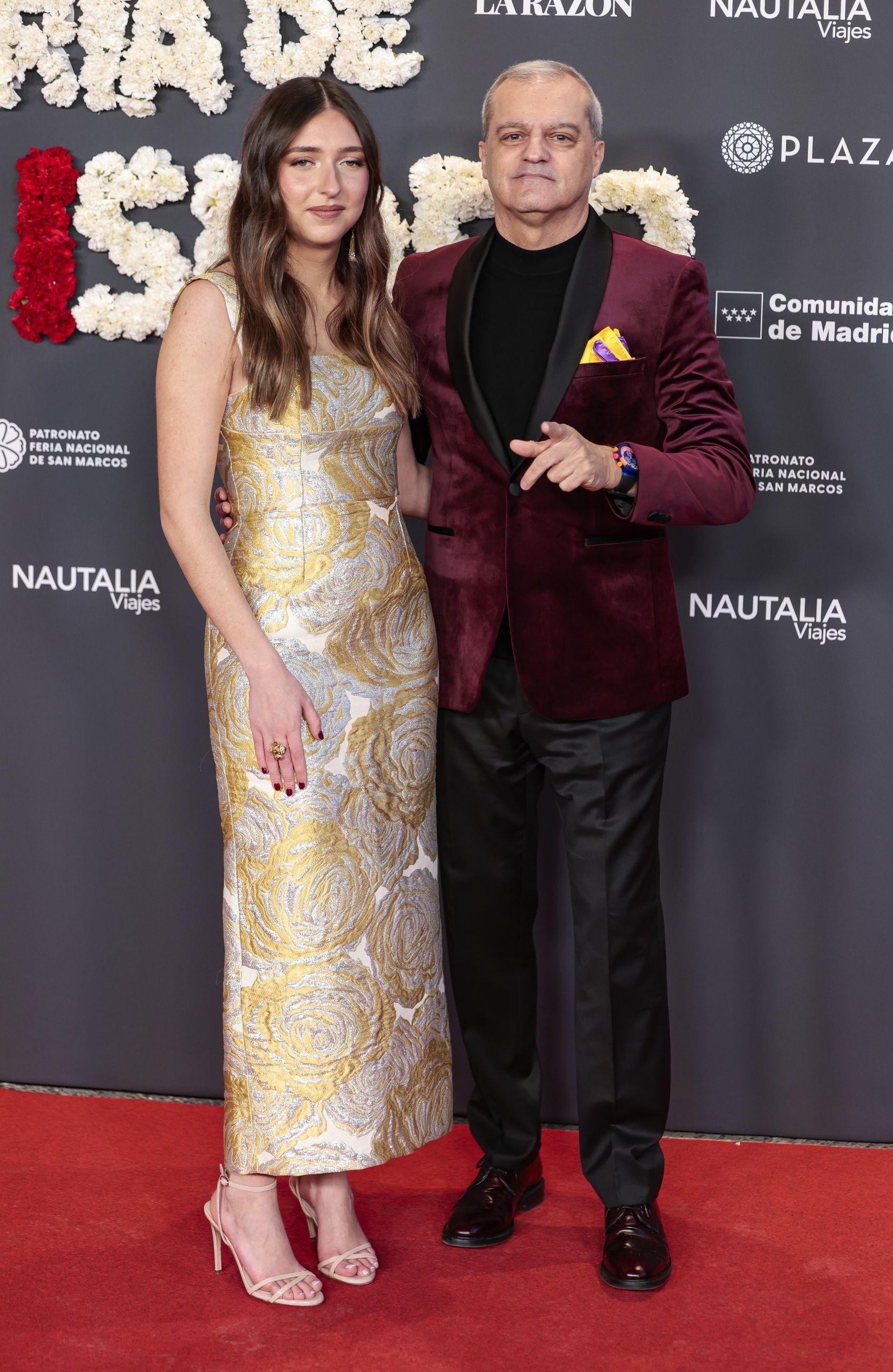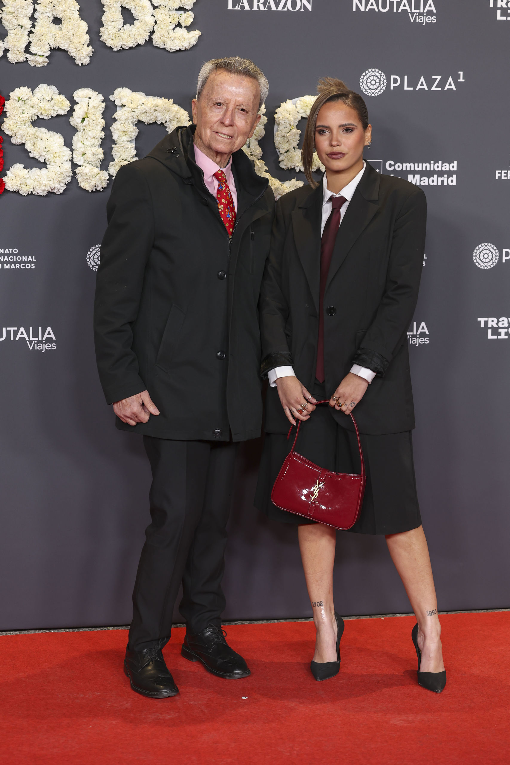 José Ortega Cano y su inseparable hija Gloria Camila, que apostó por un look masculino y un recogido pulido.