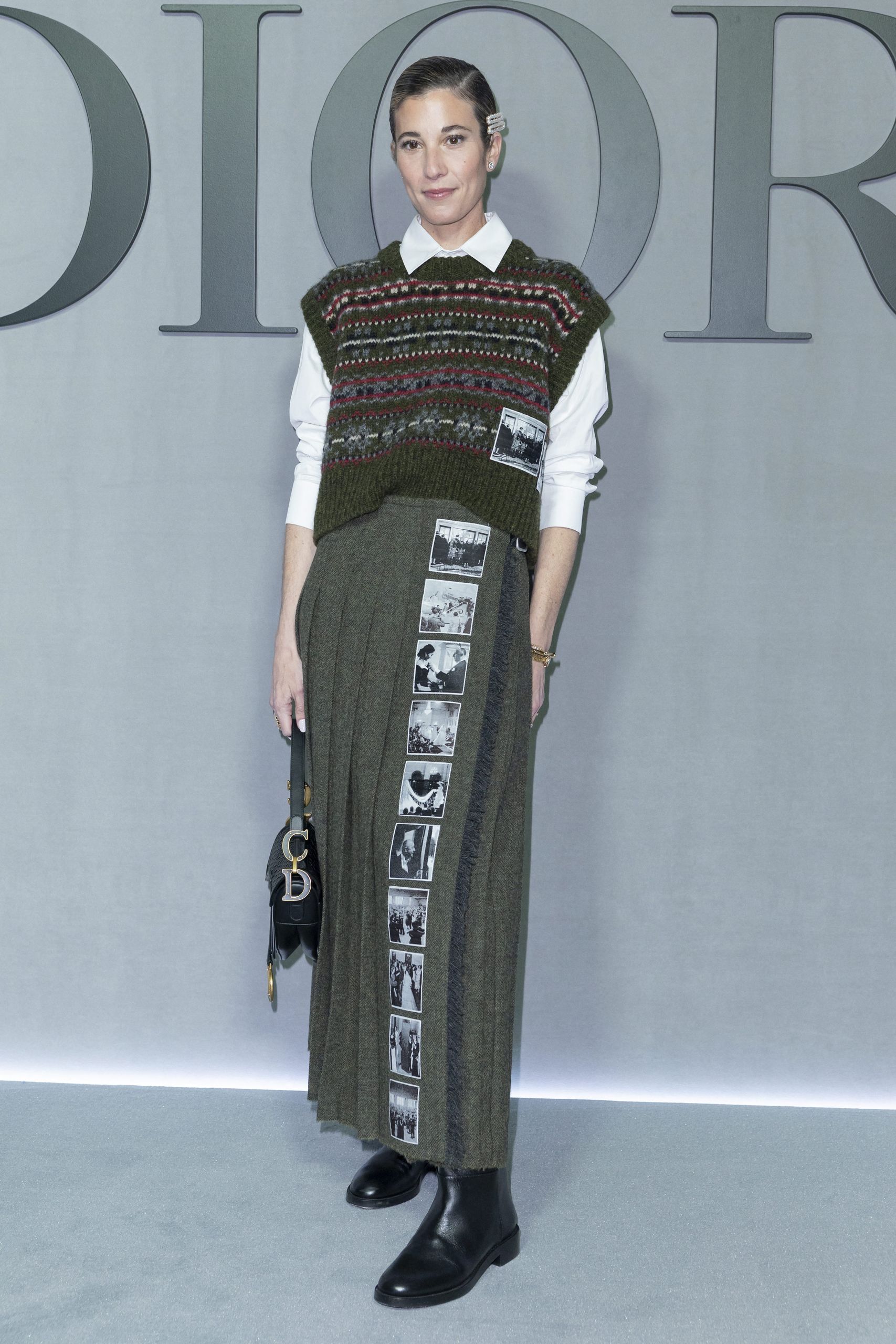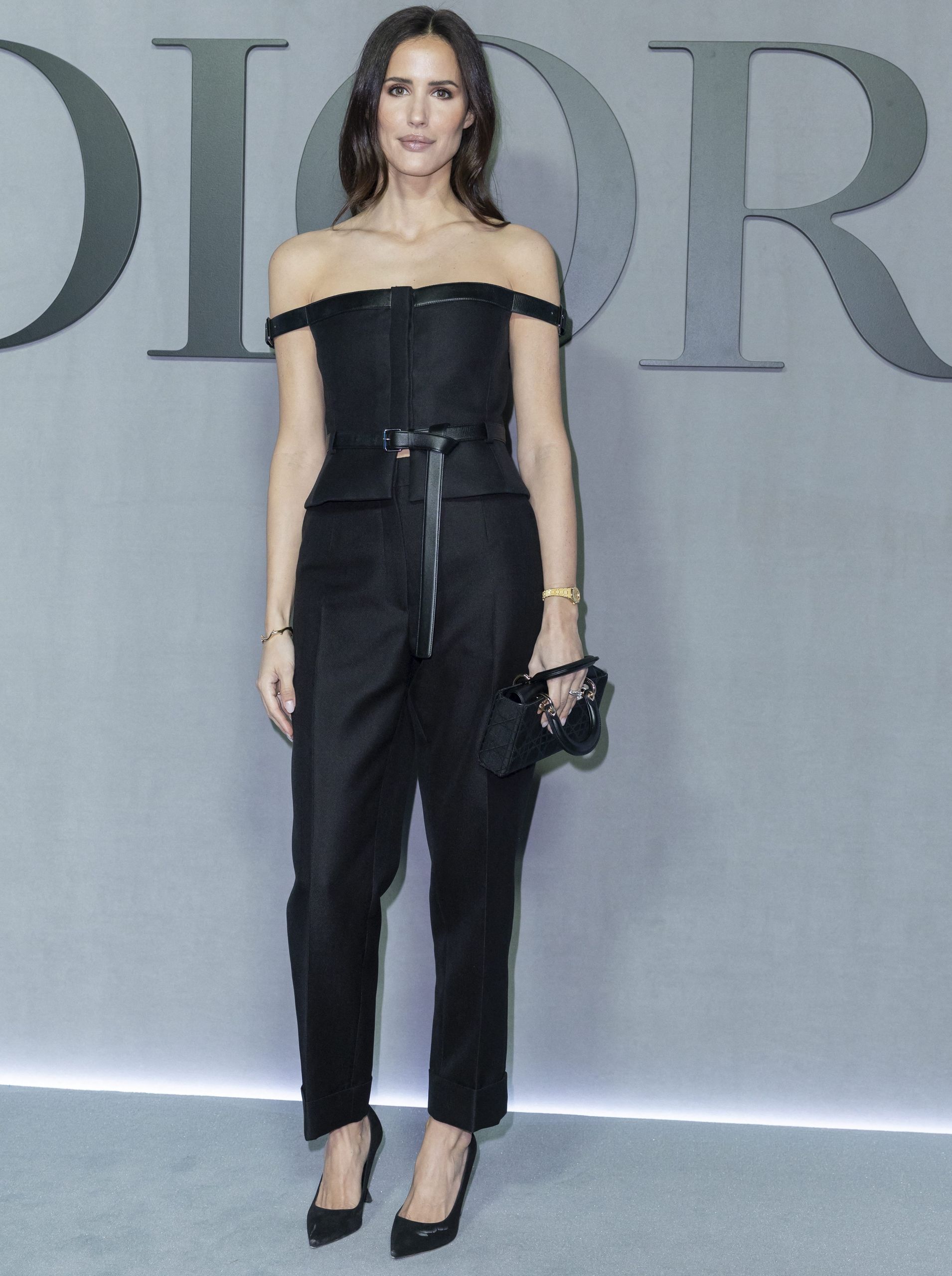 Alex Rivière, que debutó hace semanas como diseñadora en Mercedes-Benz Fashion Week, estuvo en el desfile de Dior con un totl look en negro con camisa escote bardot y un pantalón recto y entallado, combinados con unos salones negros.
