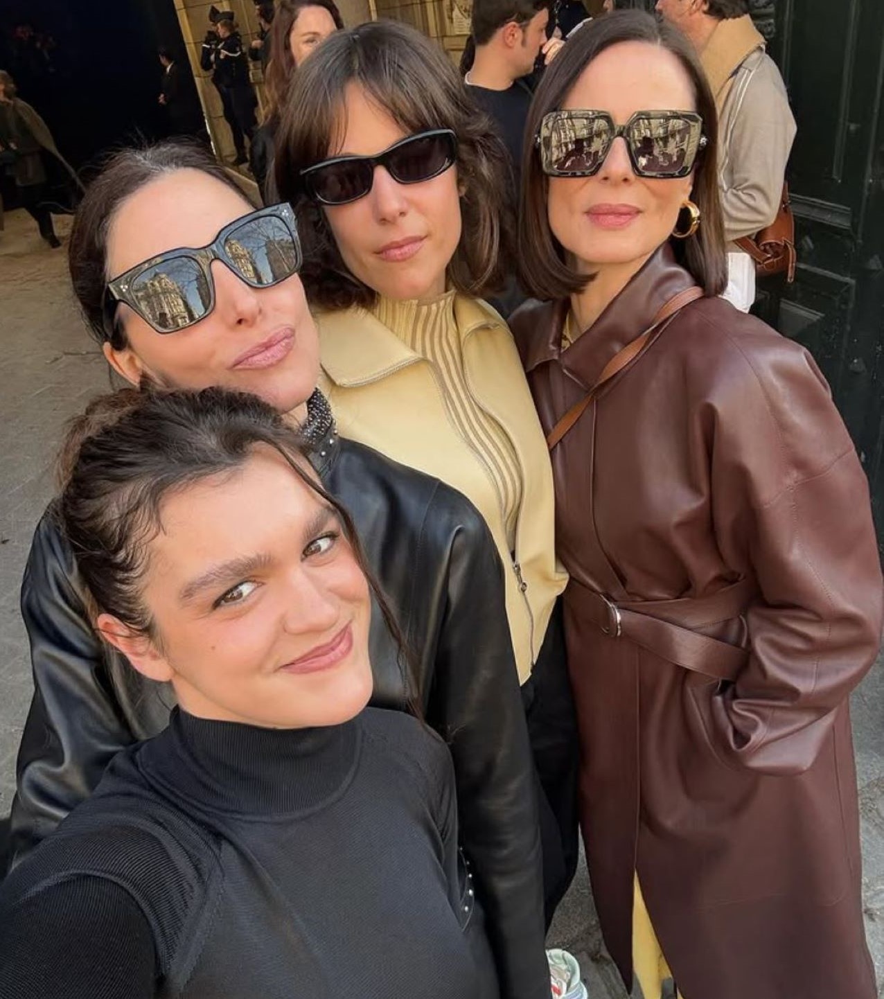La cantante Amaia, posando con las actrices Bárbara Lennie, Iria del Río y Aitana Sánchez-Gijón, que no quisieron perderse el desfile de Hermès.