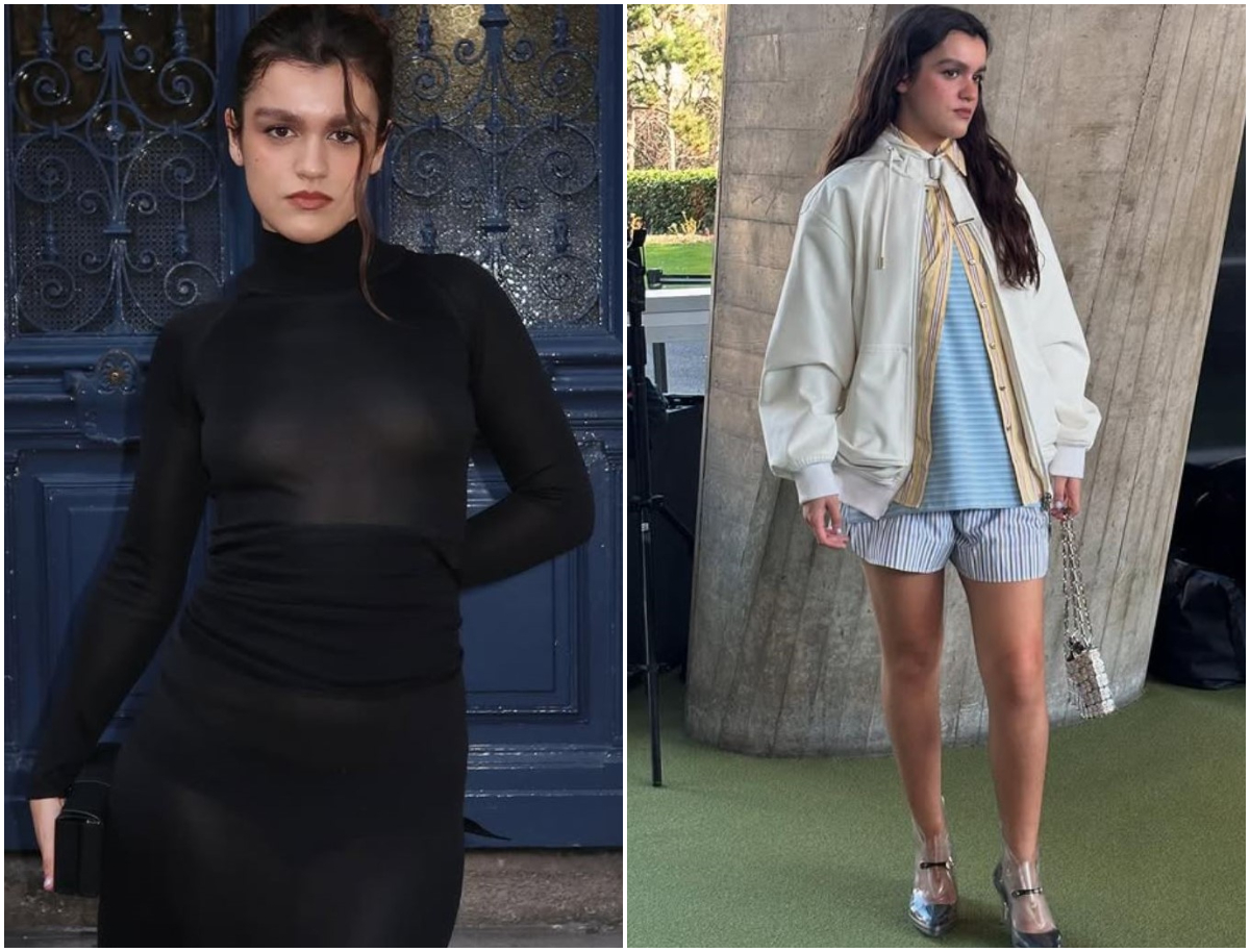 Amaia Romero estuvo en los desfiles de Hermès, con vestido negro de transparencias y look pijamero para el desfile de Rabanne.