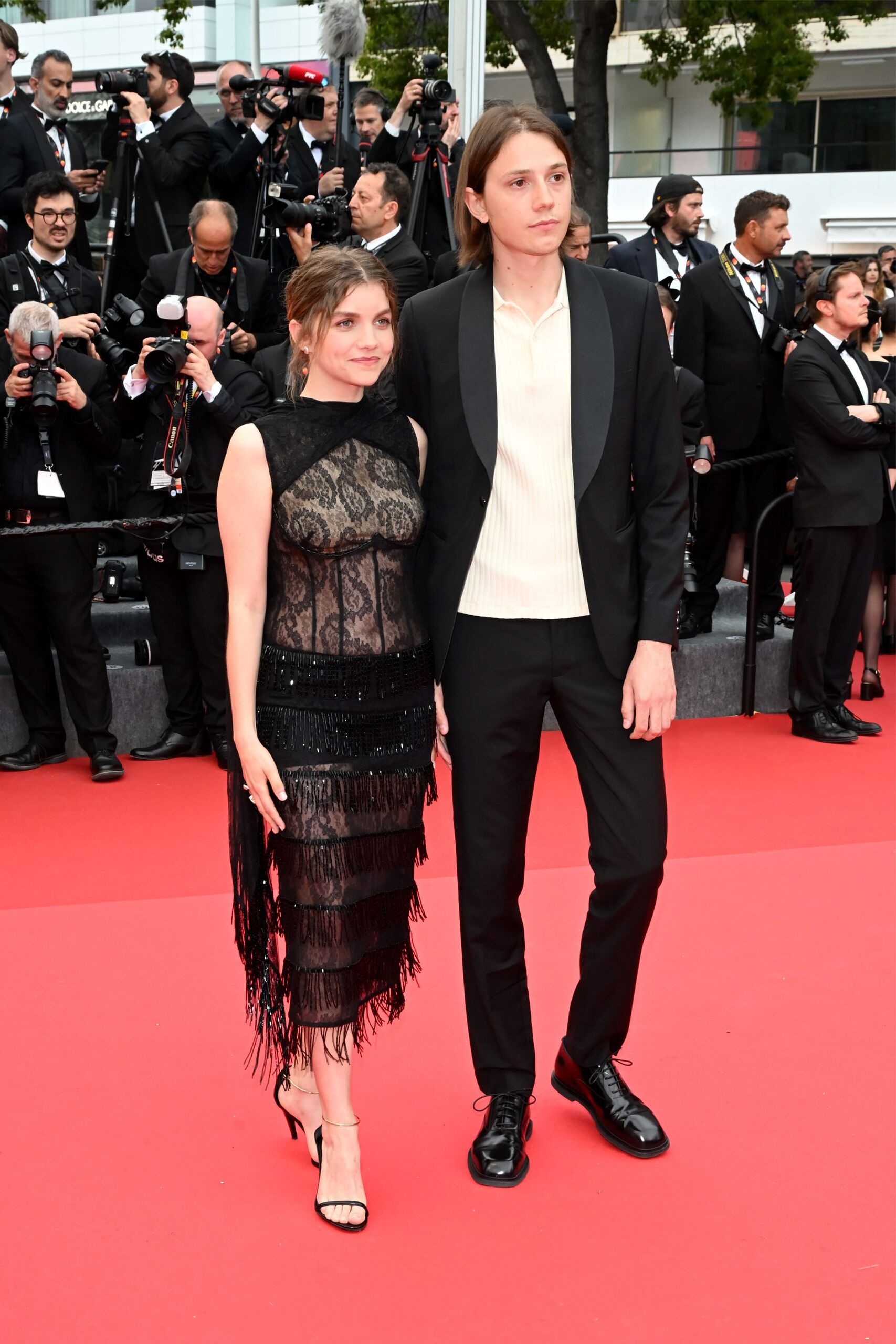 La actriz francesa desafió la norma de las transparencias con un vestido negro con falda de flecos de Fendi.
