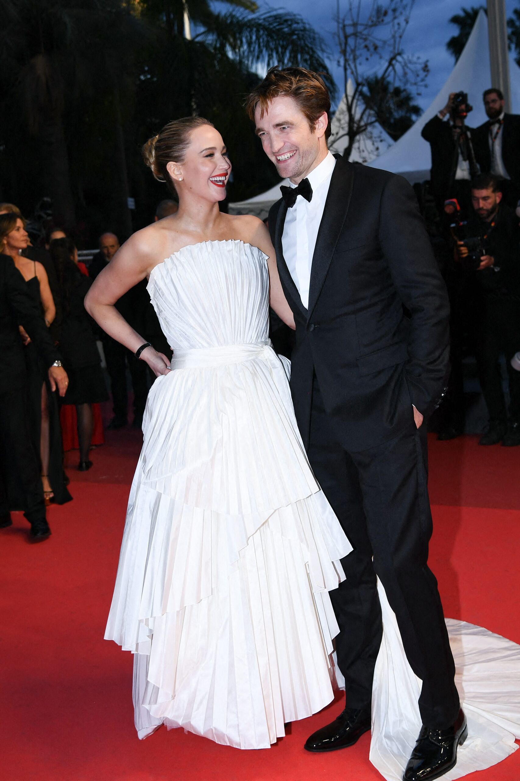 La actriz estadounidense lució un vestido blanco de Christian Dior con el volumen al límite para cumplir con la nueva normativa de la alfombra roja, aunque no evitó que su compañero de reparto, Robert Pattinson, le pisara la cola.