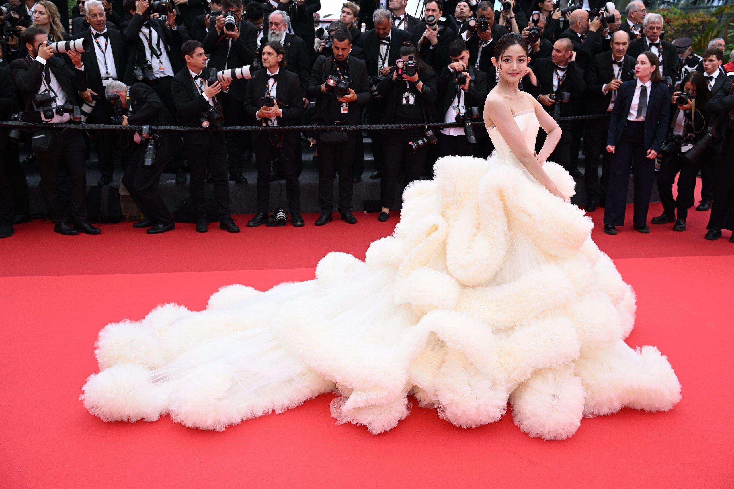 La actriz china desoyó por completo las normas y apareció en la alfombra roja con un voluminoso vestido blanco de Wang Feng Couture.