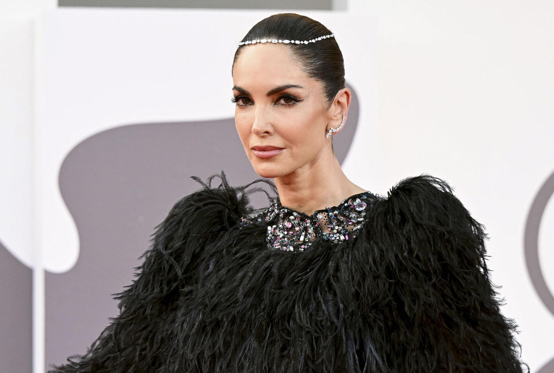 Siguiendo con los vestidos joya, la italiana ha optado por un vestido de tirantes entallado, con bordados florales y geométricos combinados con pedrería en tonos morados y azules. Es un diseño de Yara Shoemaker que ha combinado con un un fino choquer, pulseras y pendientes a juego en tonos dorados.