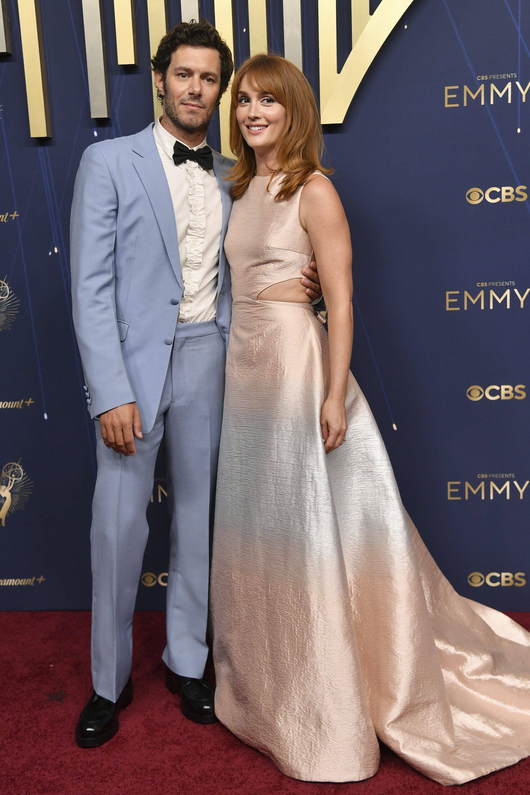 En ese mismo color, con pinceladas de azul, acudió Leighton Meester, que pisó la alfombra roja para acompañar a su marido, Adam Brody, nominado a mejor actor en una serie de comedia por 'Nadie quiere esto'.